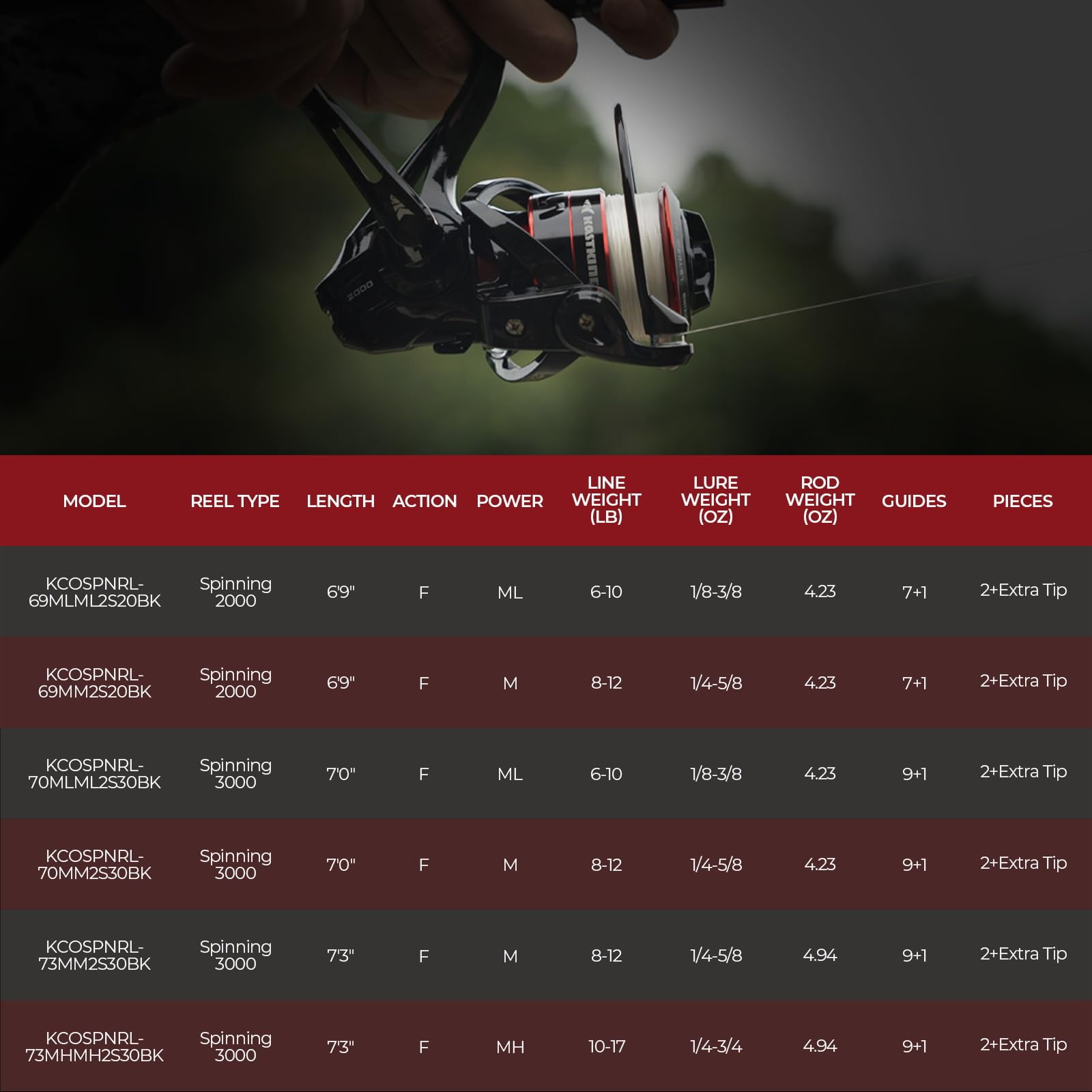 KastKing Royale Legend II Spinning Fishing Combos, 7'3'' M Twin Tips Rod, Size 3000