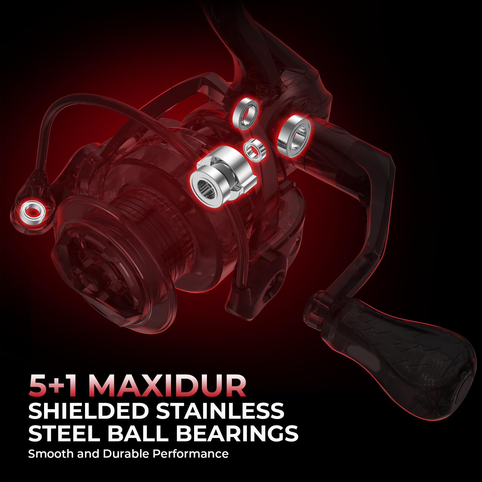 - Valued Spinning Reel: This KastKing Royale Legend II Spinning reel gives you 5+1 MaxiDur double shielded stainless steel ball bearings, precision machined high-alloy and brass gears, up to 22 lbs of carbon fiber drag, zero-rust graphite frame and body, aerodynamic carbon rotor, and stainless steel hardware.