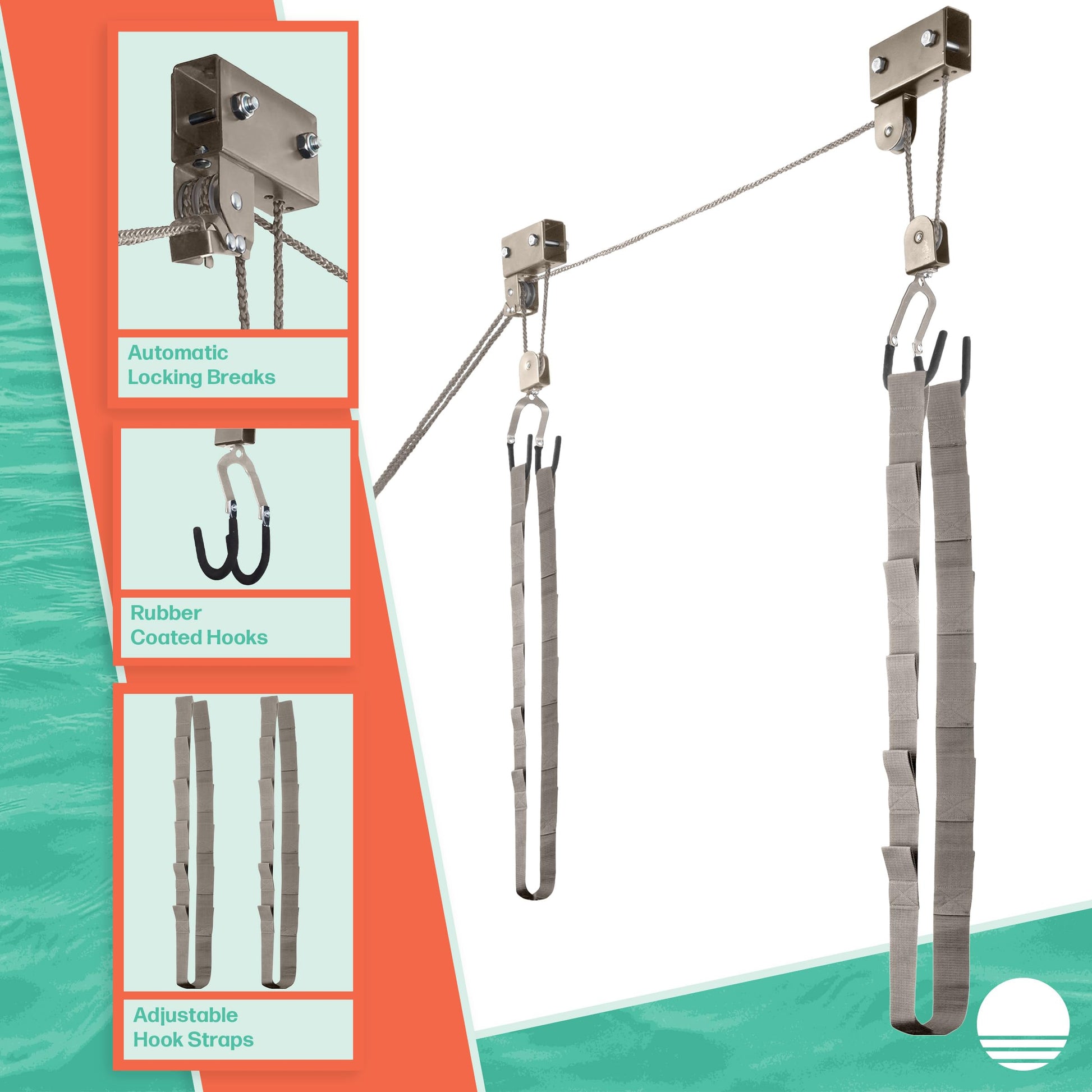Kayak Storage Hoist - Overhead Pulley System with 125lb Capacity for Canoes, Bikes, Ladders, and More - for up to 12-Foot Ceilings
