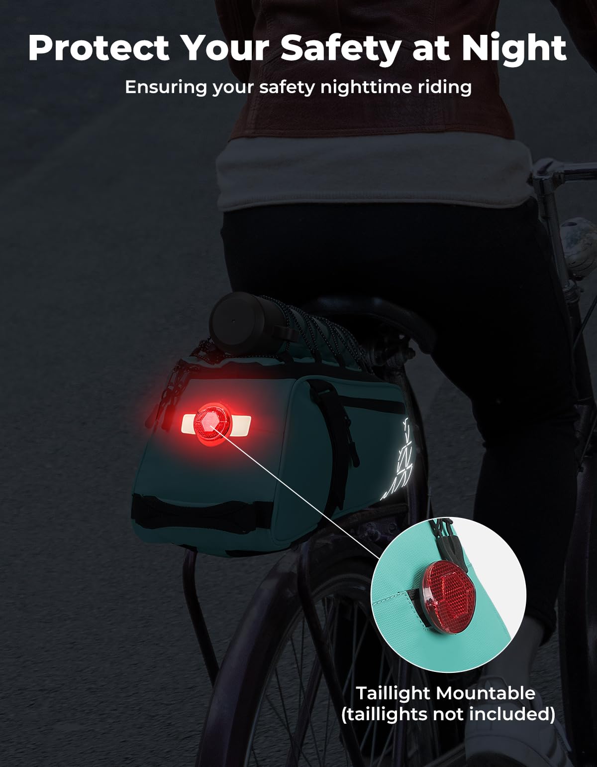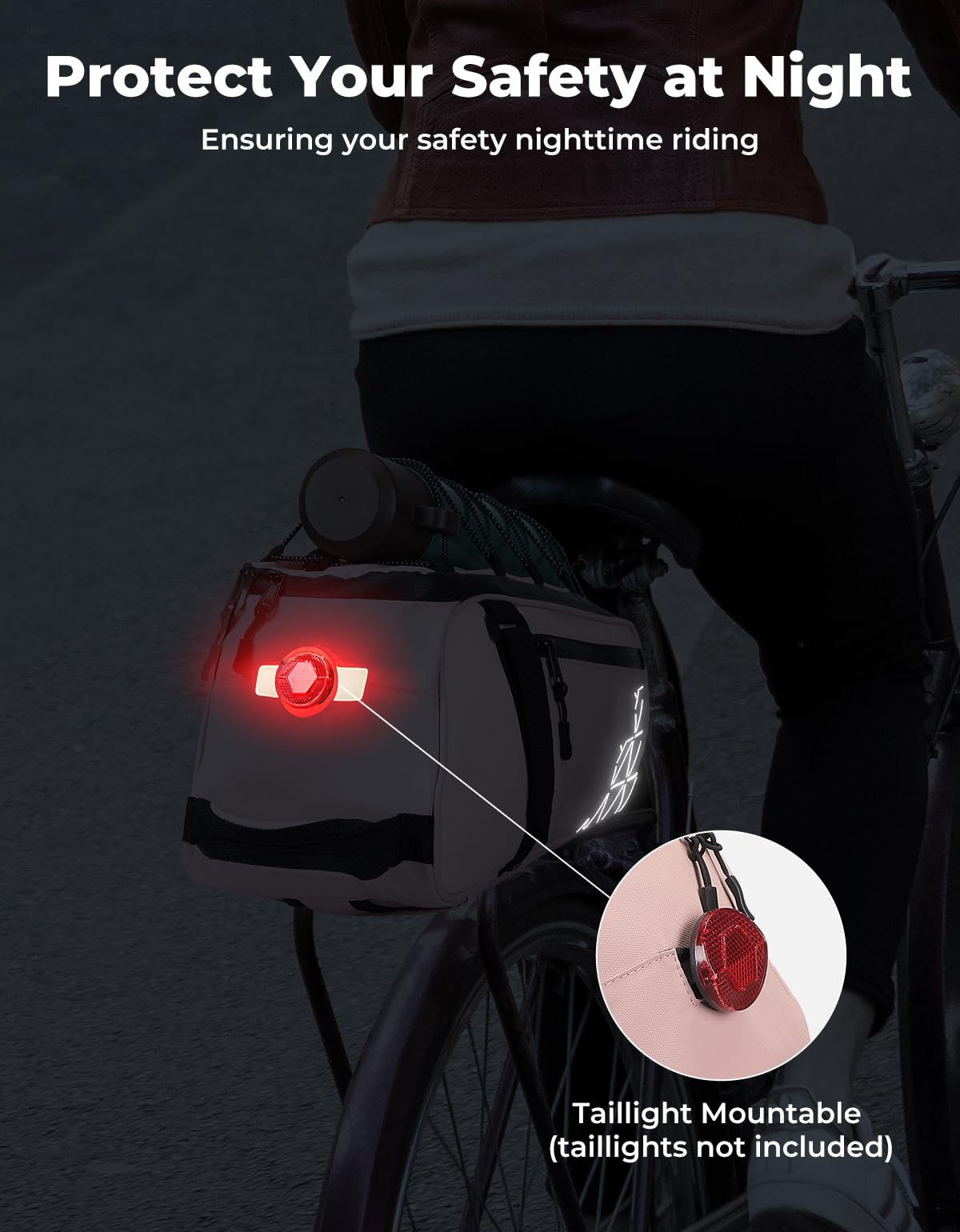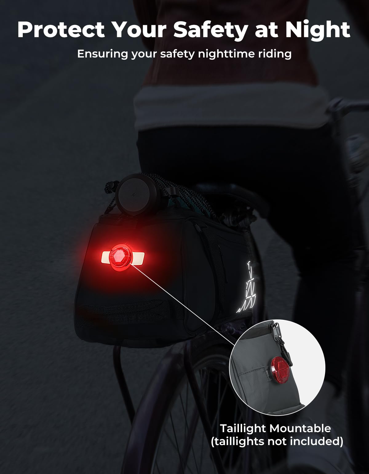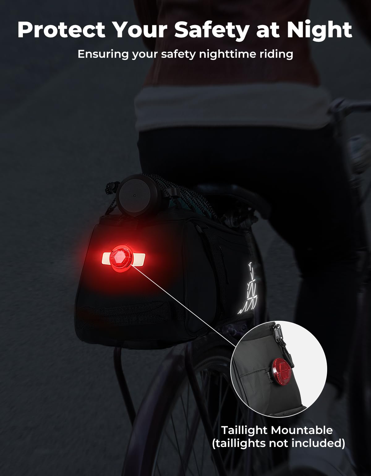 - Safe Night Riding: Enhance your night riding safety with our bike bag, featuring white patterned PVC reflective strips on the back and sides for improved visibility. It also includes a convenient strap for easy taillight installation (taillight not included), ensuring an extra layer of protection