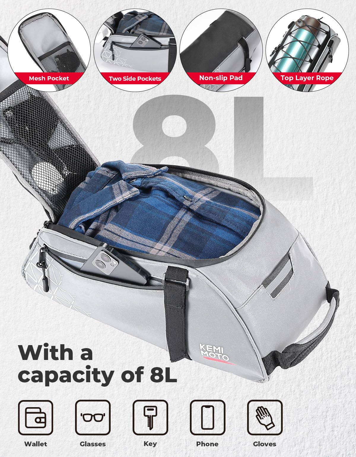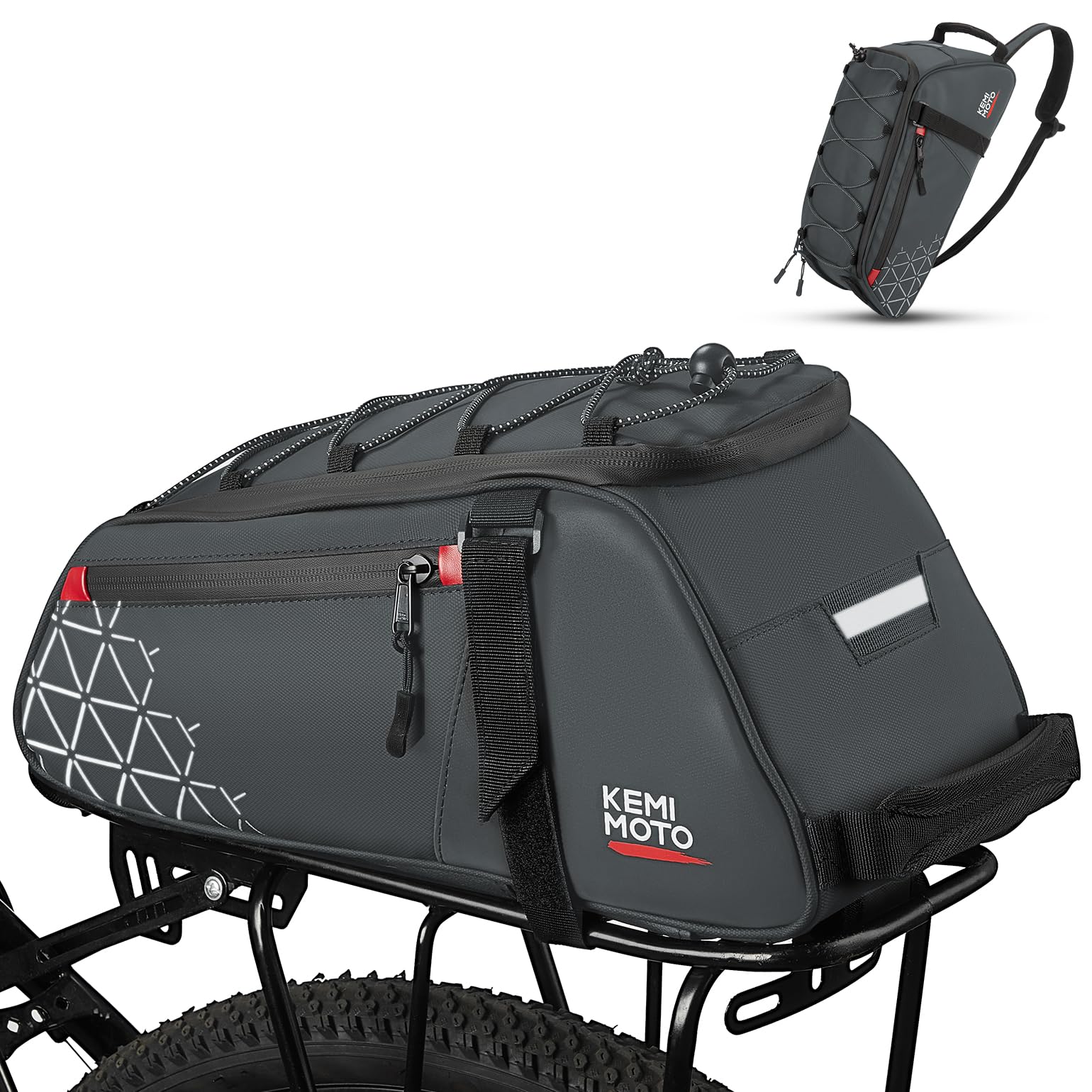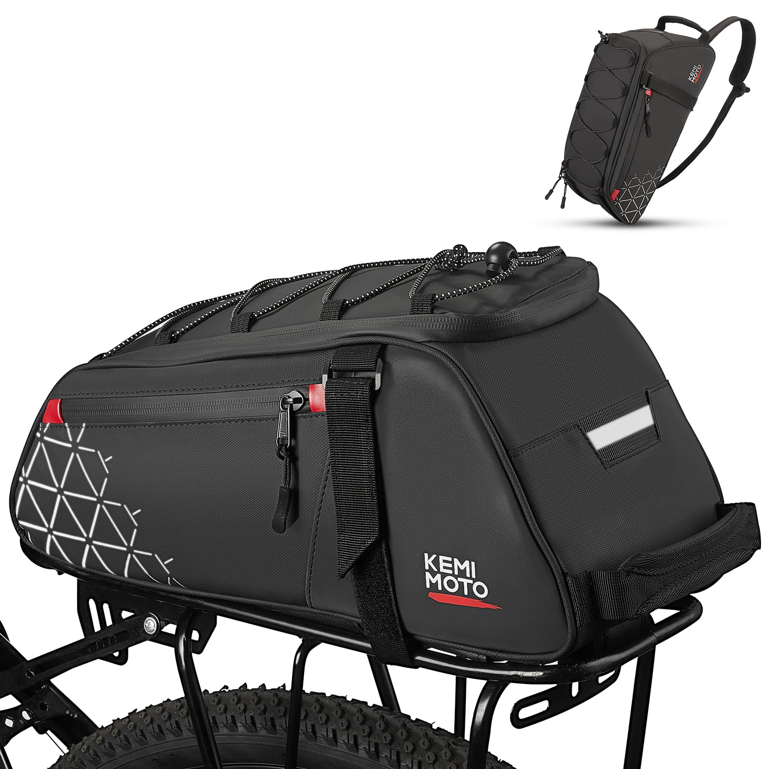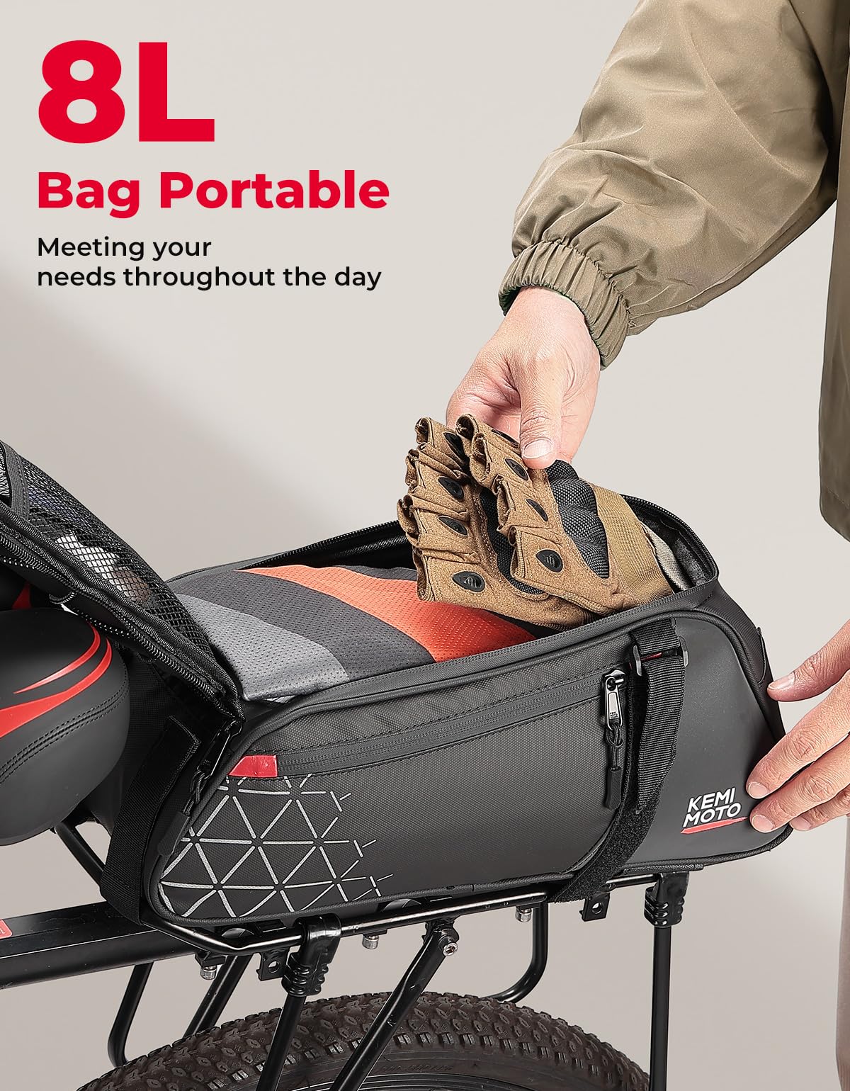 KEMIMOTO Rear Bike Rack Bag - 8L PVC Water Resistant Ebike Bags for Bicycle Rear Rack, Bicycle Trunk Pannier for Commuter Travel Shopping and Cycling (Black)
