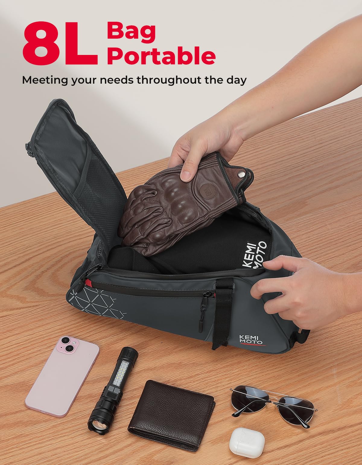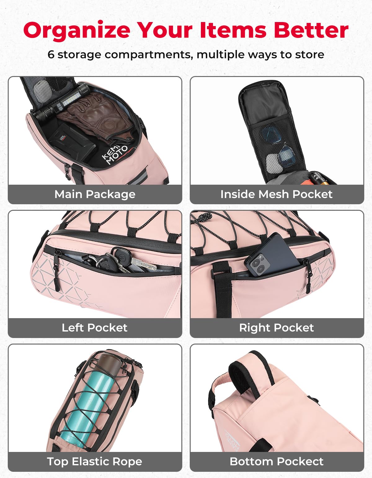 - 8L Capacity: The bike rack bag measures 14.5 x 5.9 x 5.9 inches. It includes one spacious main pocket with top mesh pockets, two side pockets, and an adjustable elastic rope at the top to hold your water bottle or other items. This ebike rear rack bag is perfect for securely carrying your essentials on every ride