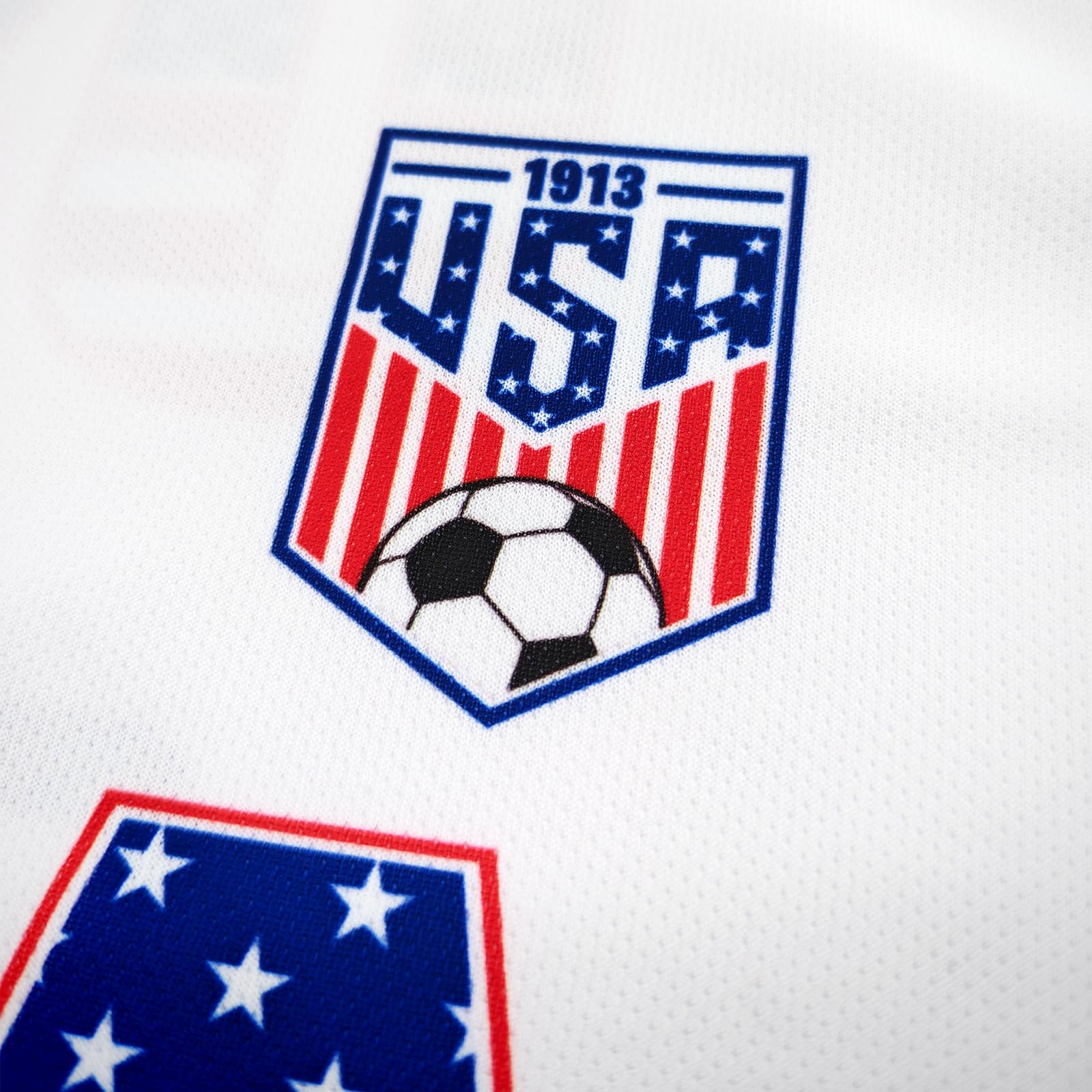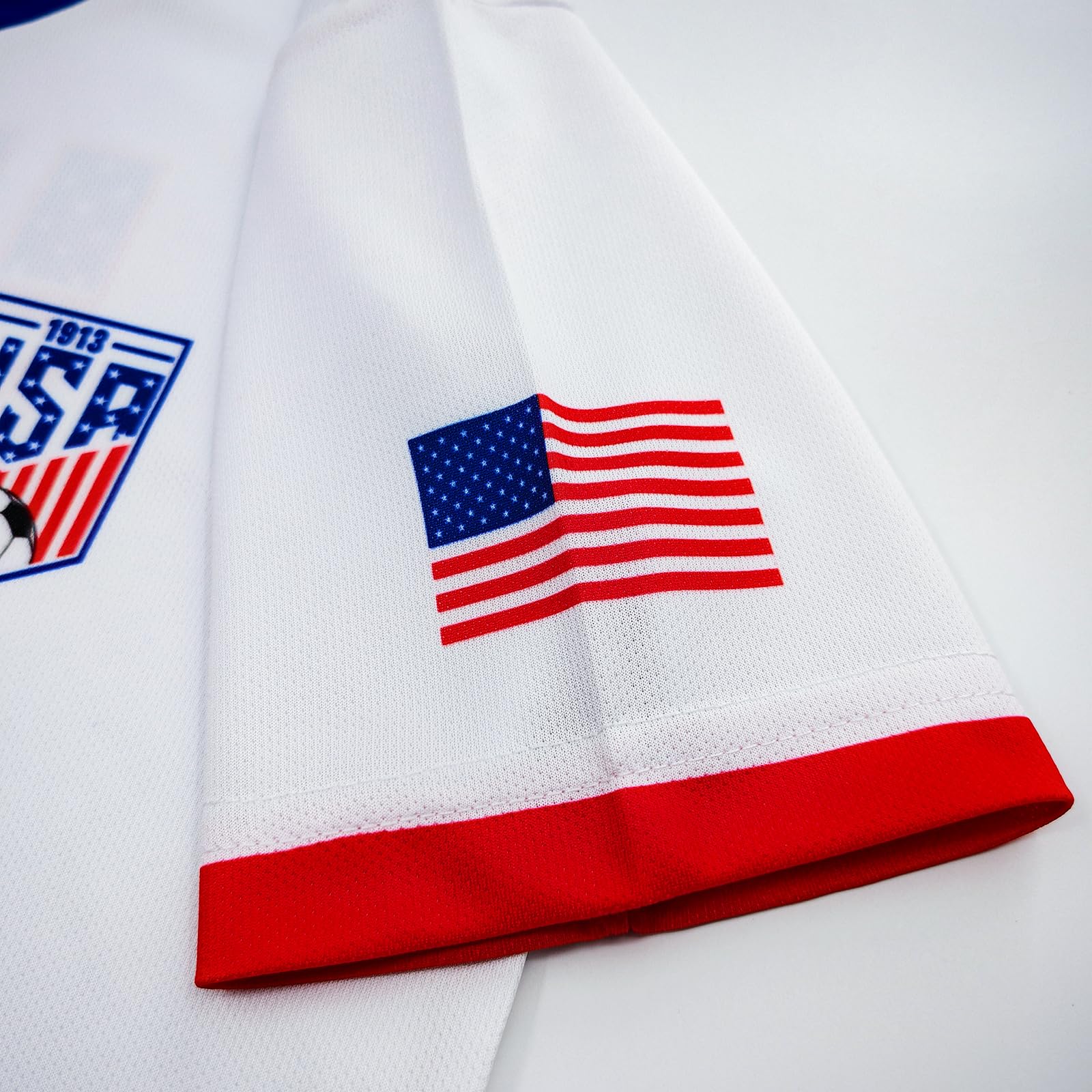 - Design: Kid USA jersey features a crisp white base with patriotic red and blue trim, adorned with the iconic USA text in stars and stripes pattern and the number 10