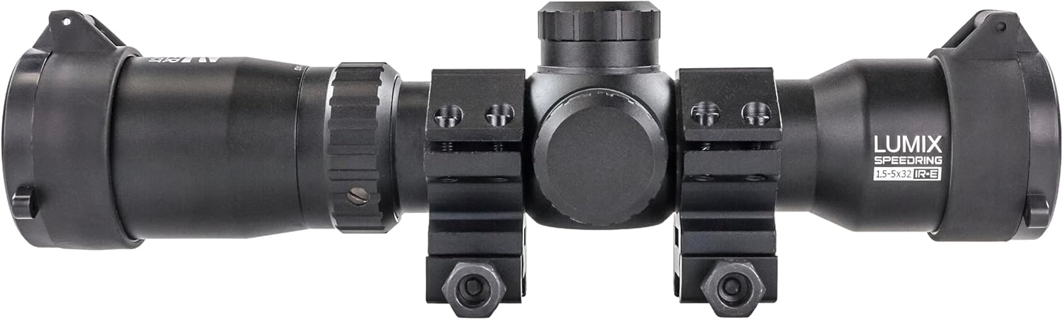 Make sure you're able to track and aim moving targets from a great distance with the Killer Instinct Lumix Speedring 1.5-5 x 32 Crossbow Scope. This scope fits most any crossbow, letting you have an advantage in any area. If you are on the hunt for the top crossbow accessories, The Lumix Speedring Scope should be on your list! The infrared crossbow scope has a durable metal case that's resistant to impacts and weather with spring-loaded covers that protects the lenses until you're ready to get the bead on that whitetail buck or pheasant. The built-in Speed Ring allows you to adjust the scope for crossbows between 270 and 450 FPS. If you want to customize your setup by using the Killer Instinct HYPR KE bolts with 150 grain Killertech broadheads, bringing in more kinetic energy, the Speedring scope can adjust to that speed to retain accuracy with maximum power. The red/blue illuminated reticle provides sharp contrast for accurate sighting in low-light conditions. Don't go out hunting unprepared, let the Lumix Speedring Crossbow Scope help you fire straight and true, every time.