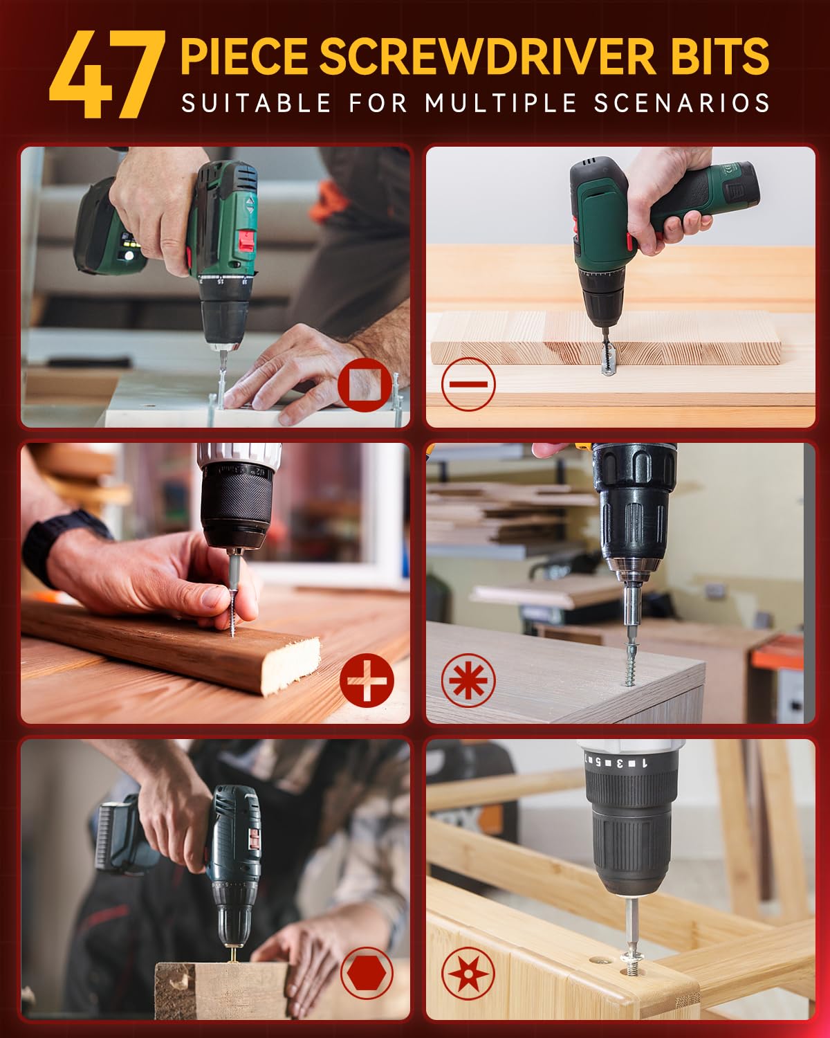 - [Convenient & Versatile] - The 400-piece drill bit set with a separate sliding drawer box design has a larger capacity. It includes a comprehensive range of impact driver bit set suitable for metal, wood, and concrete, catering not only to professional DIY enthusiasts but also to household repair needs.