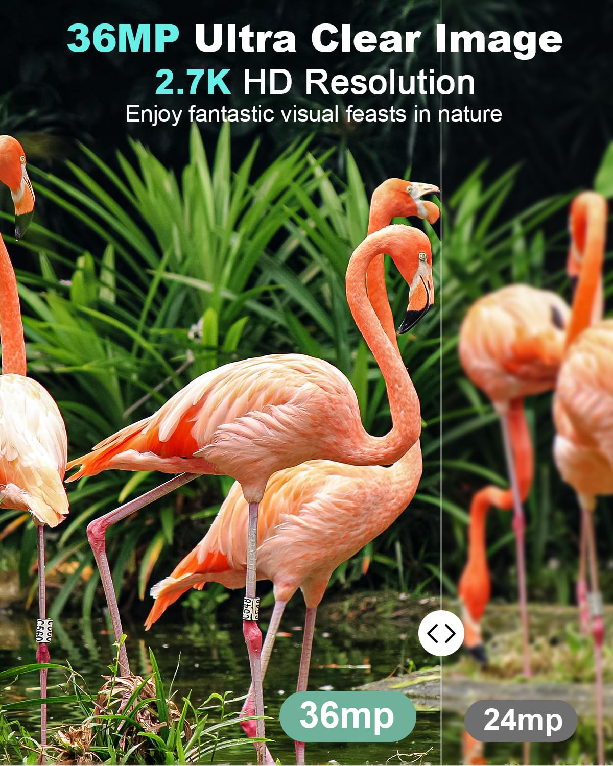 - 【Ultra-clear Photos and Videos】36MP Still Images & 2.7K Videos. Thanks to premium optical lens and an advanced image sensor, and built-in 22Pcs 850nm low glow LEDs, this trail camera provides crystal clear images and amazing smooth 2.7K videos with sound in the daytime, low light or nighttime, combined with noise reduction speaker and 2.0” HD TFT Color Screen, which takes you into the world of wildlife.
