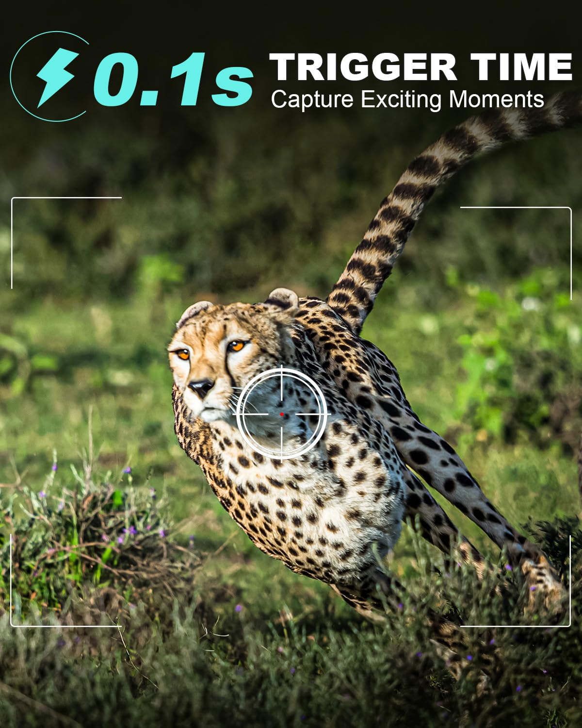- 【Fast 0.1s Trigger Time &130°Wide Angle】Once movements are detected, the lightning-fast trigger speed of less than 0.1s with 1 to 3 shots choice guarantees fast and accurate capture of each detected motion exposed to the field, never miss any animals that wander by this camera. 130° detection range to give you an expansive field view, indispensable for hunting, wildlife observation, farm monitoring, home backyard, plant growth observation, property security and surveillance.
