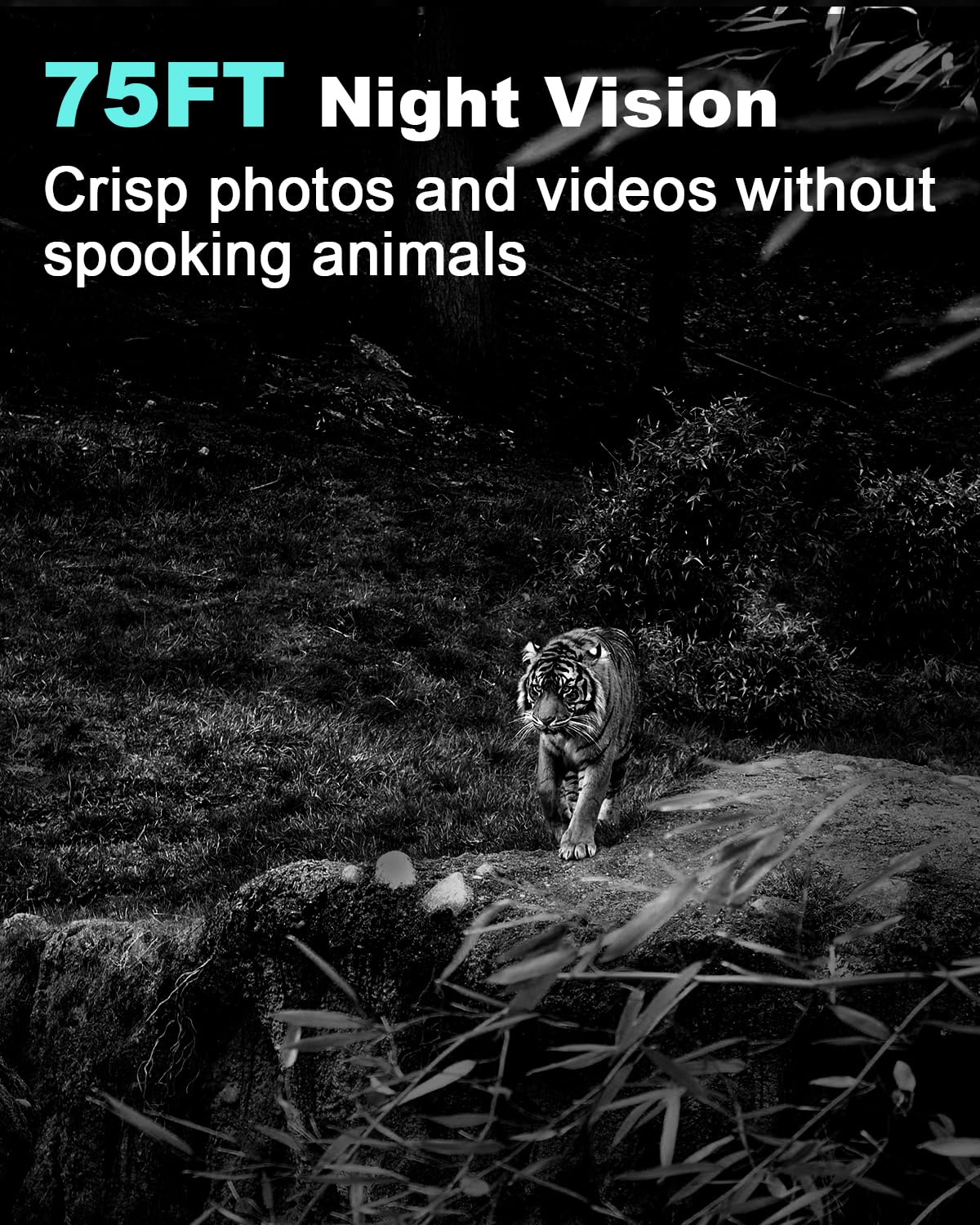 - 【Super Night Vision & Low Glow Infrared LEDs】The trail camera is equipped with powerful 22Pcs low glow infrared LEDs, features upgraded 850nm infrared technology, makes this game camera more stealth, which can show the night behavior of animals without disturbing them, encompasses adaptive illumination technology to avoid overexposure or over-dimmed, which can provide clear night images and videos in total darkness, delivers brilliant night vision up to 75ft.
