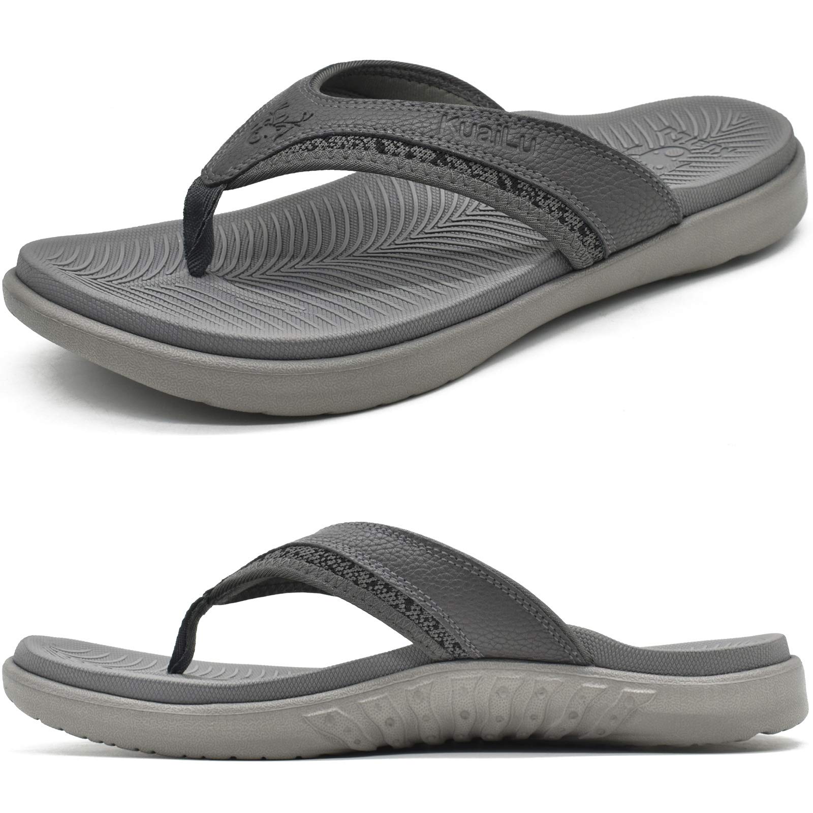 KuaiLu Mens Sport Flip Flops Comfort Orthotic Thong Sandals with Plantar Fasciitis Arch Support Outdoor Summer Beach Size 7~15
