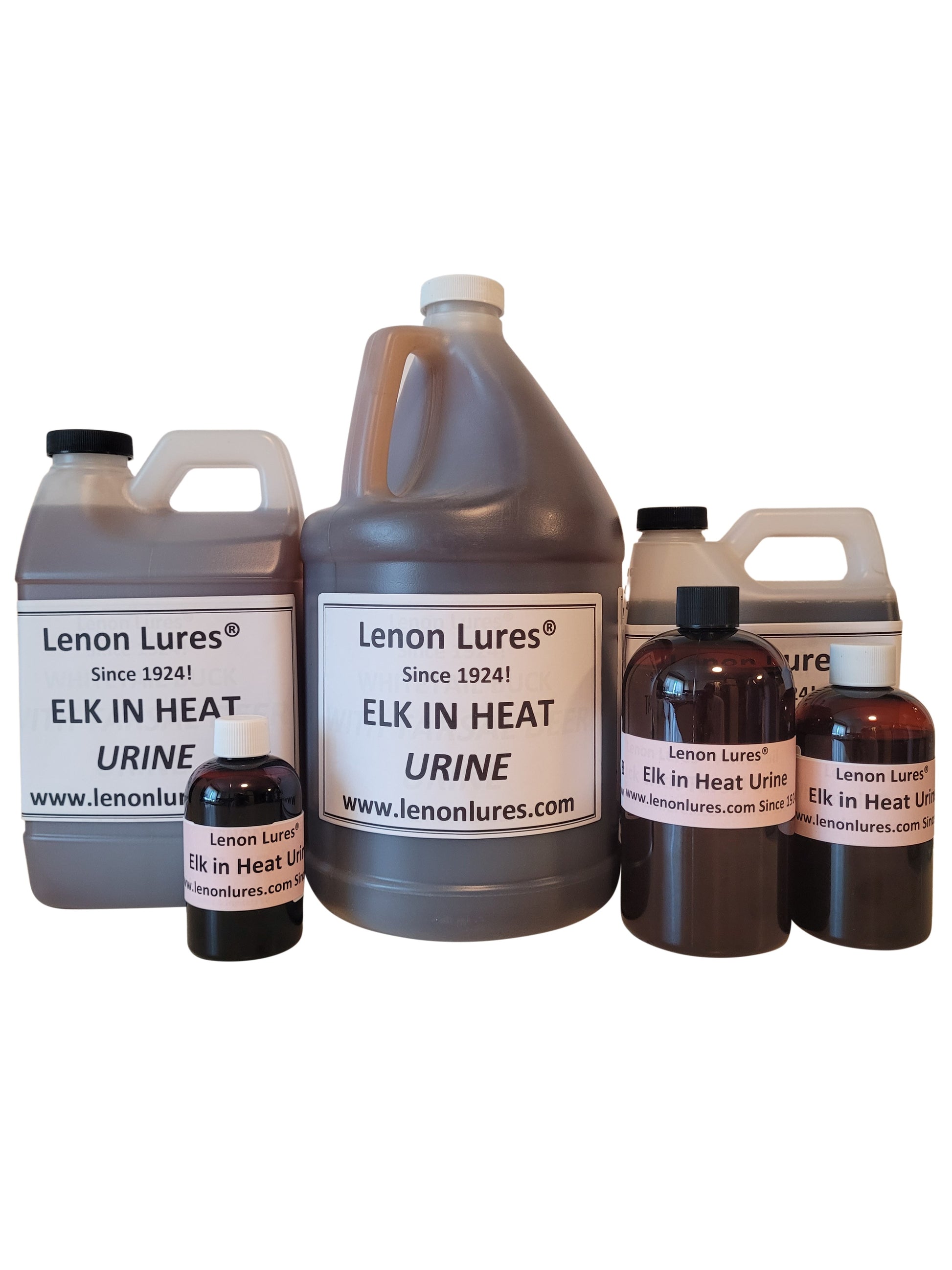 Lenon's Pure Elk in Heat Urine. 100% pure, fresh elk urines - no water or preservative added. Collected from Cow Elk thru the Rut. Use in the Rut to attract bulls or get them in front of your cameras.
