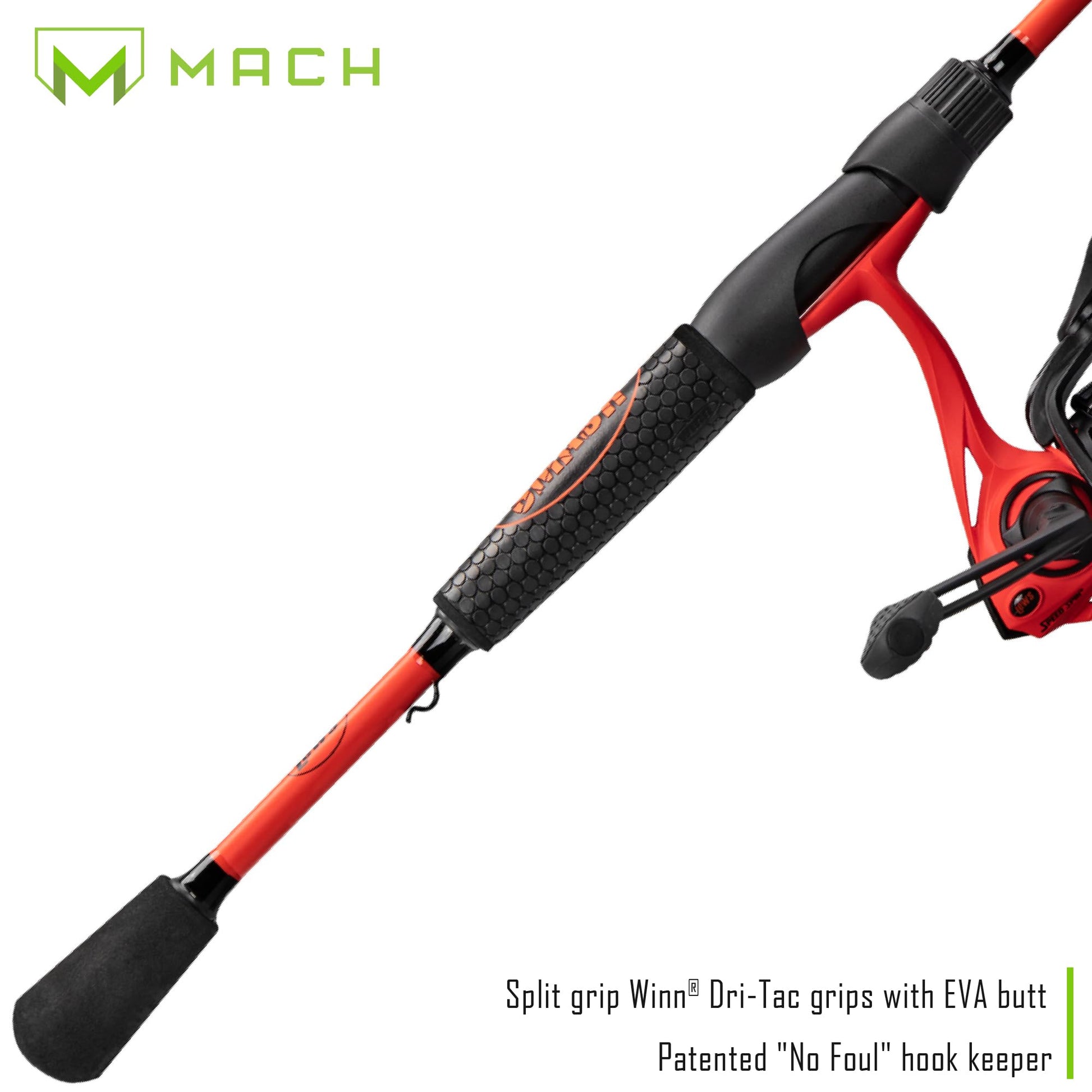 - SUPERIOR COMFORT: MACH's Winn Dri-Tac split grip handle and EVA butt section allow for a comfortable grip on each rod. The demands of all-day fishing call for superior comfort, and MACH anglers find it with the Smash. The graphite reel seat is lightweight, sensitive and adds to the superior comfort of this MACH combo