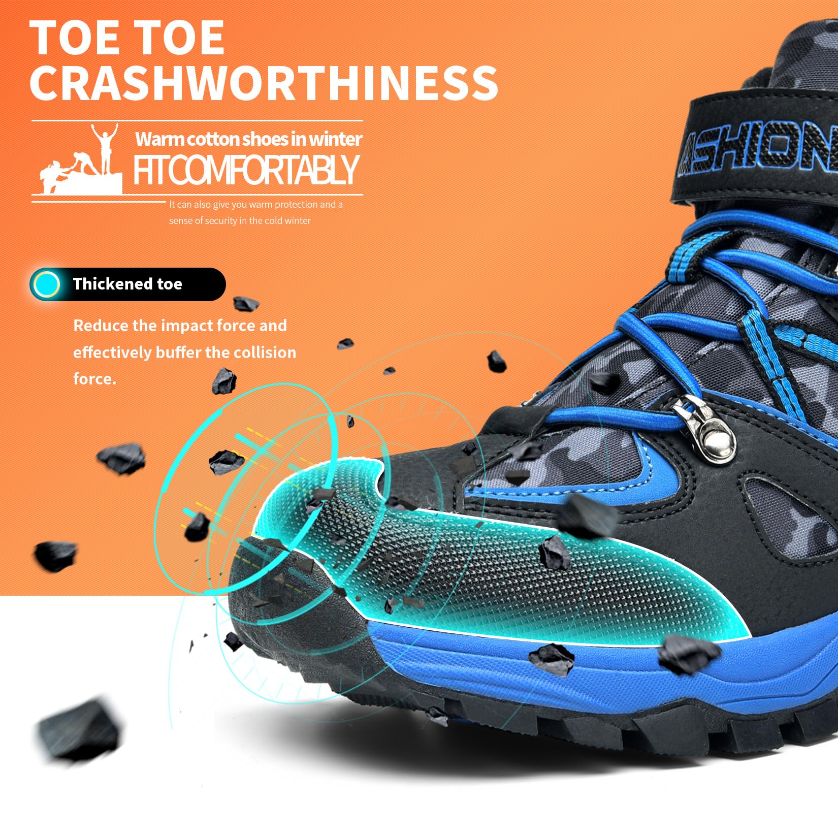 - 【Anti-collision Toe Boys Snow Boots】Boys boots with turnup rubber toe guard promotes natural motion and effectively protects kids toes from scrapes when doing outdoor activities