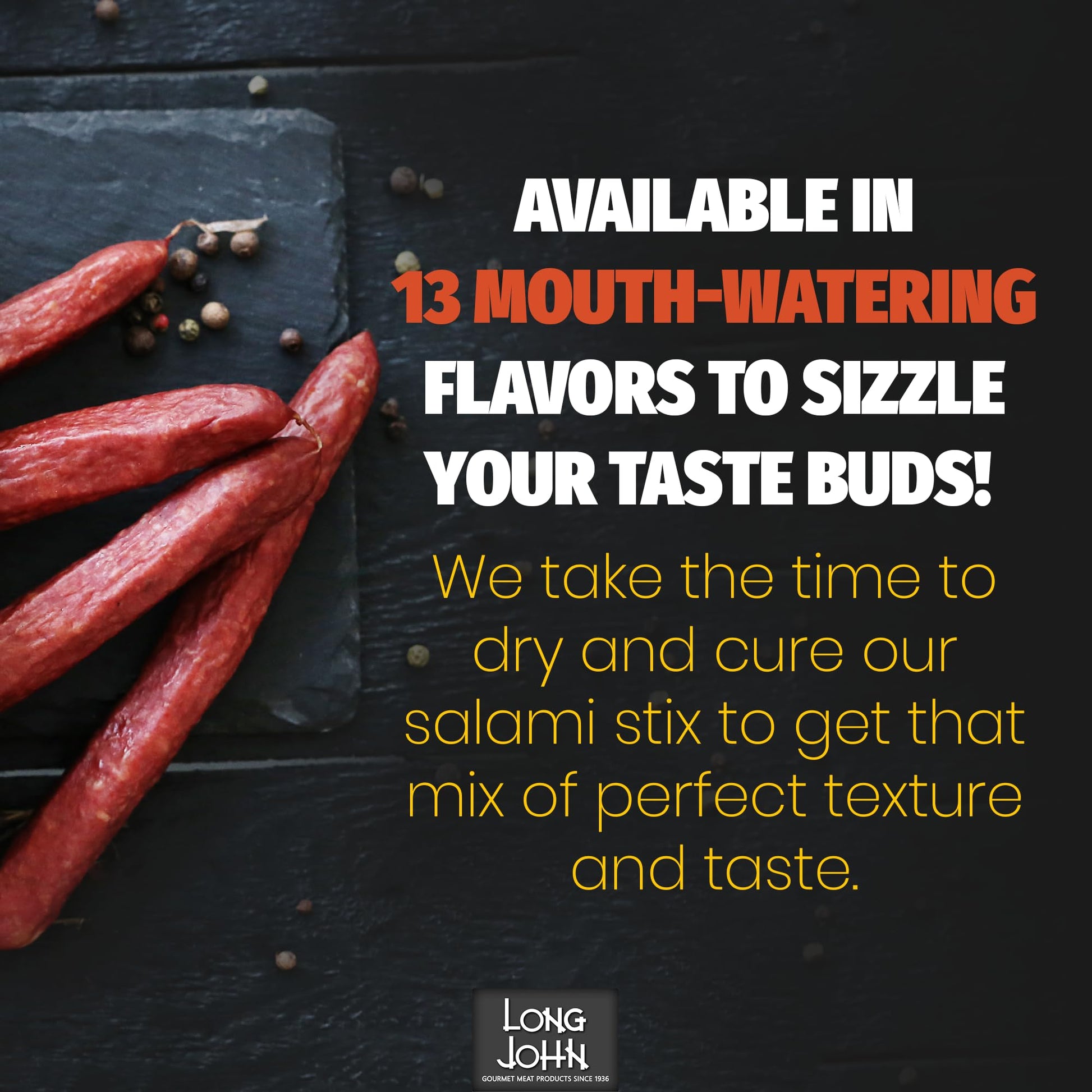 Here at Long John, we’ve been crafting fresh, gourmet salami sticks using the same traditional methods since 1936. This gives our salami sticks a bigger, more robust flavor, a higher-quality texture, and a freshness you can’t get with general store-bought options.