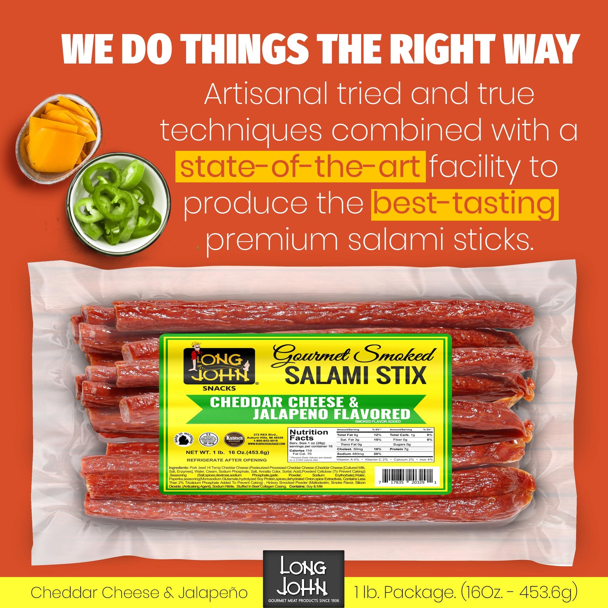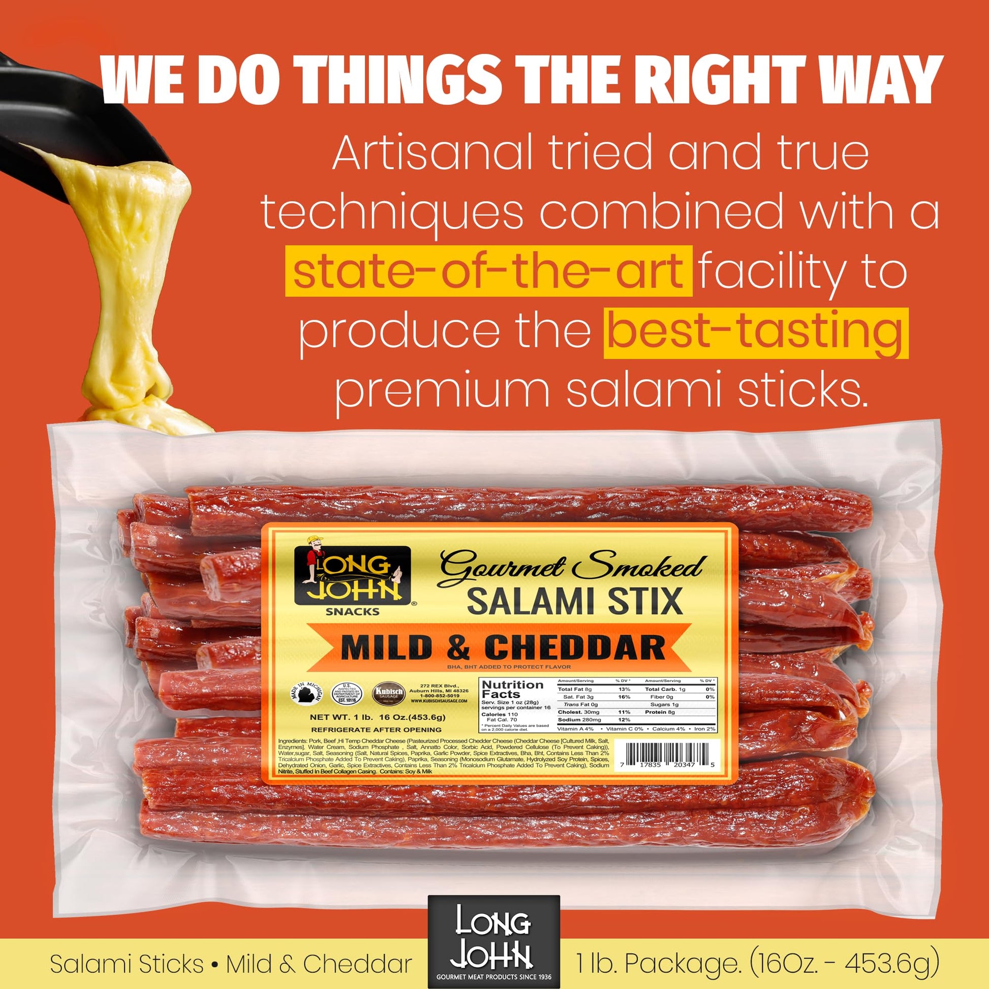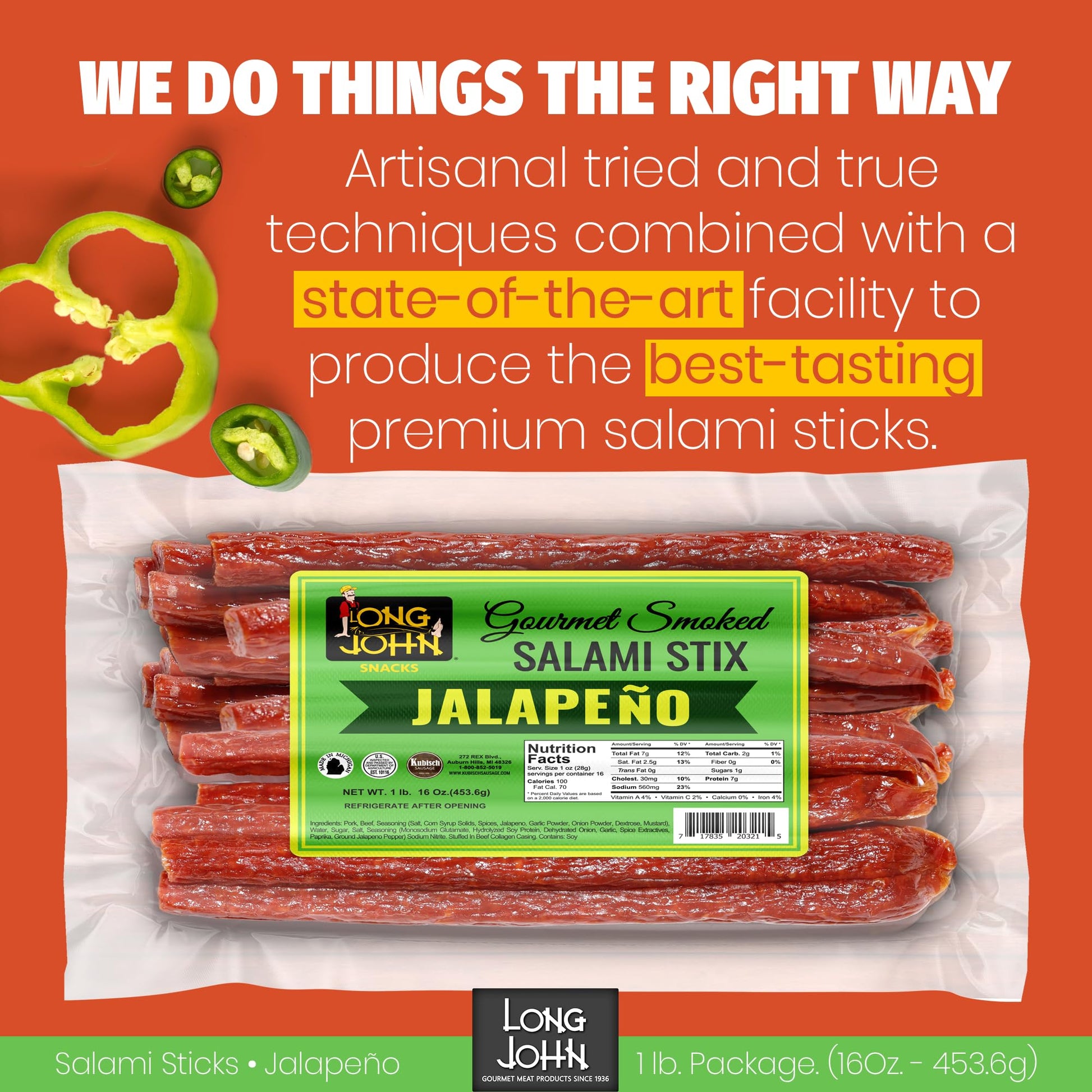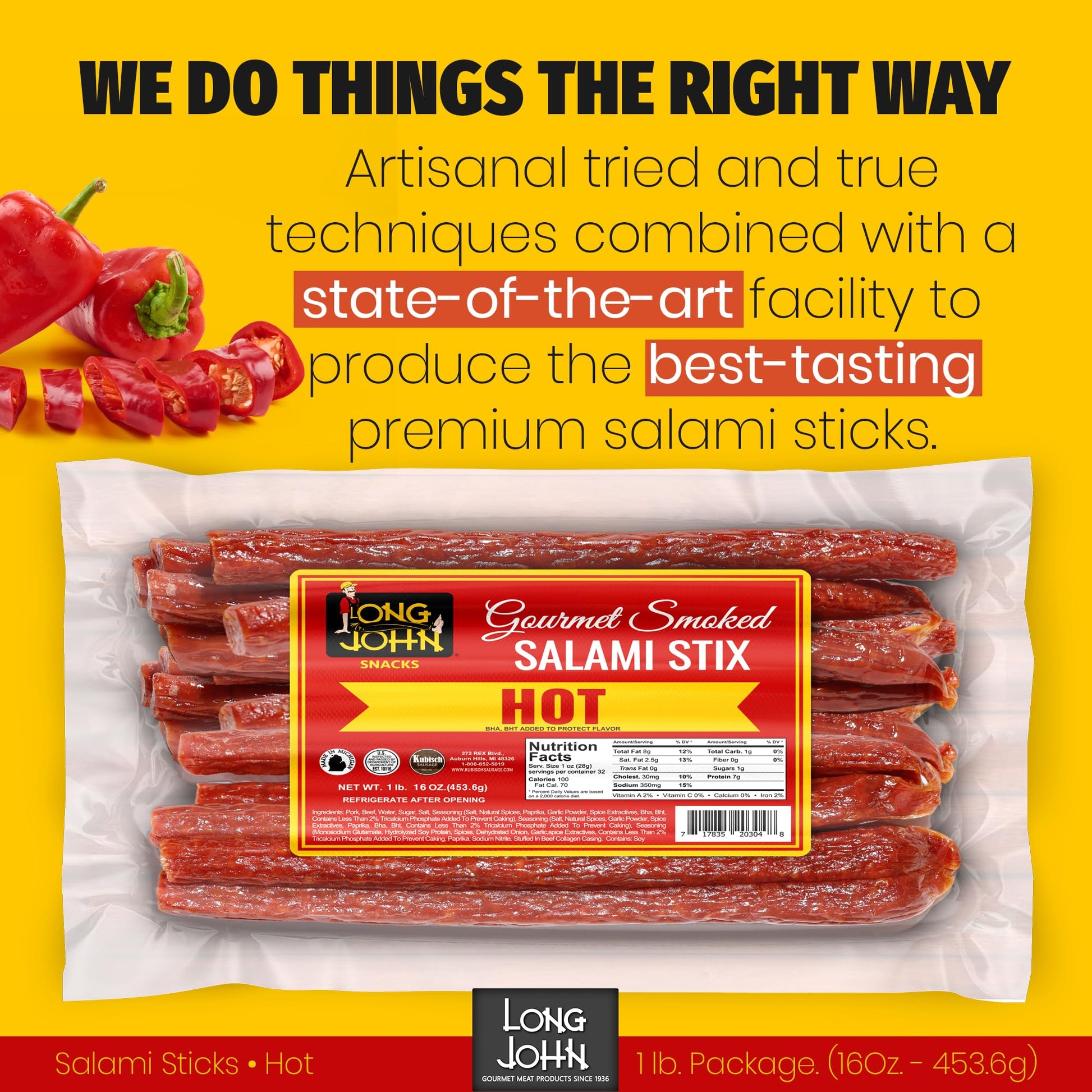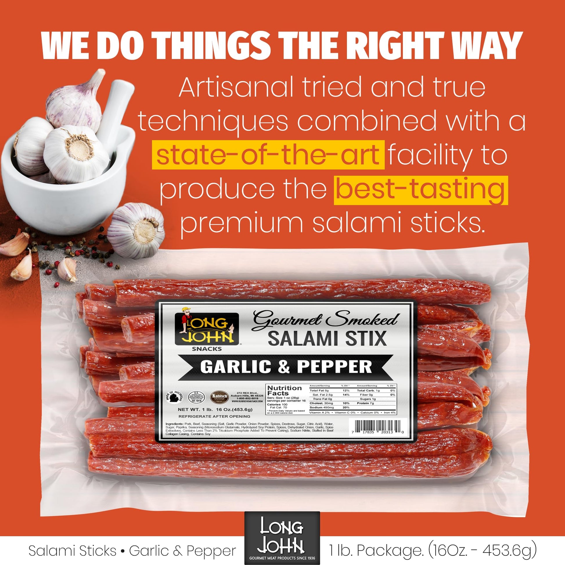 Starting as a local butcher shop in Detroit, Michigan, we at Long John still retain the traditional recipes and processes used since 1936. We never compromise quality, value, or services to our customers, so you can be sure you’re getting the best-tasting salami stick possible from the first bite to the last.