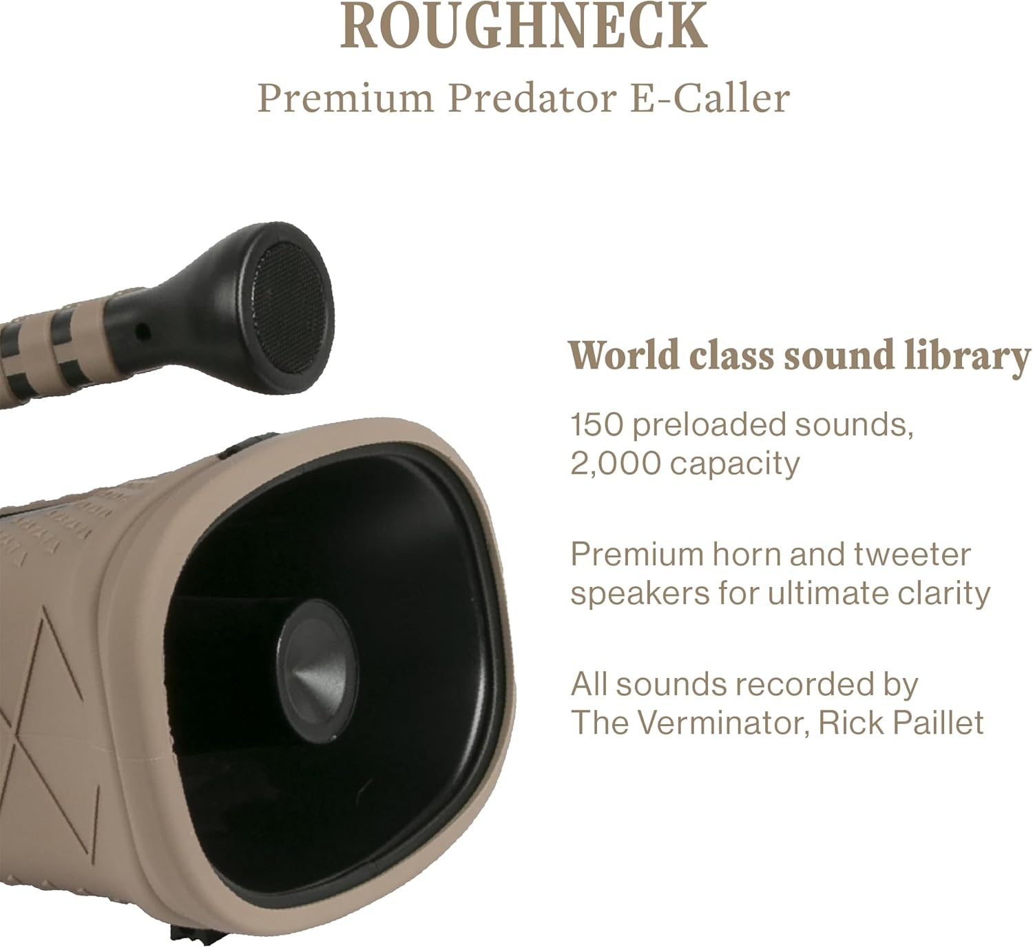 The Lucky Duck Roughneck E-Caller has a capacity of 2,000 sounds and comes preloaded with 150 predator-enticing live animal sounds recorded and compiled by "The Verminator" Rick Paillet.