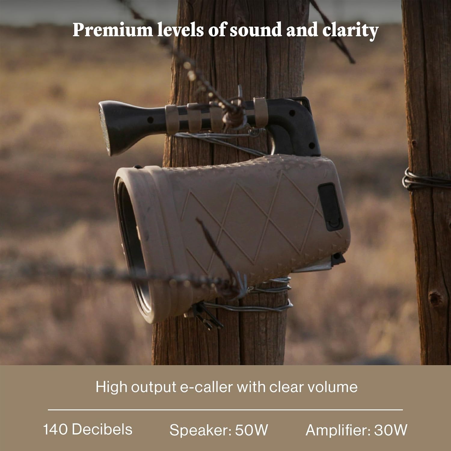 The Roughneck is extremely portable and compact without sacrificing volume or clarity. It features live animal sounds compiled by The Verminator, Rick Paillet, which have been used to win the World Coyote Calling Contest. The silicone cover adds a layer of protection, dampens accidental sounds from hard plastic housings, and increases speaker clarity. Additional tweeter speaker provides high-frequency sounds for ultra-realistic audio that carries far.
