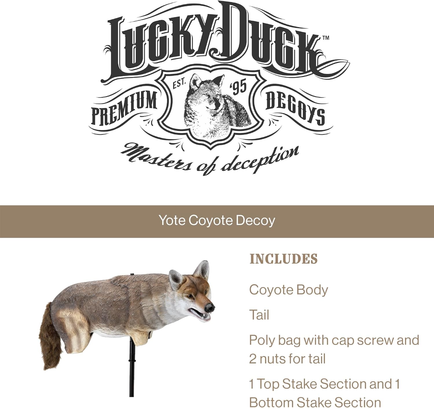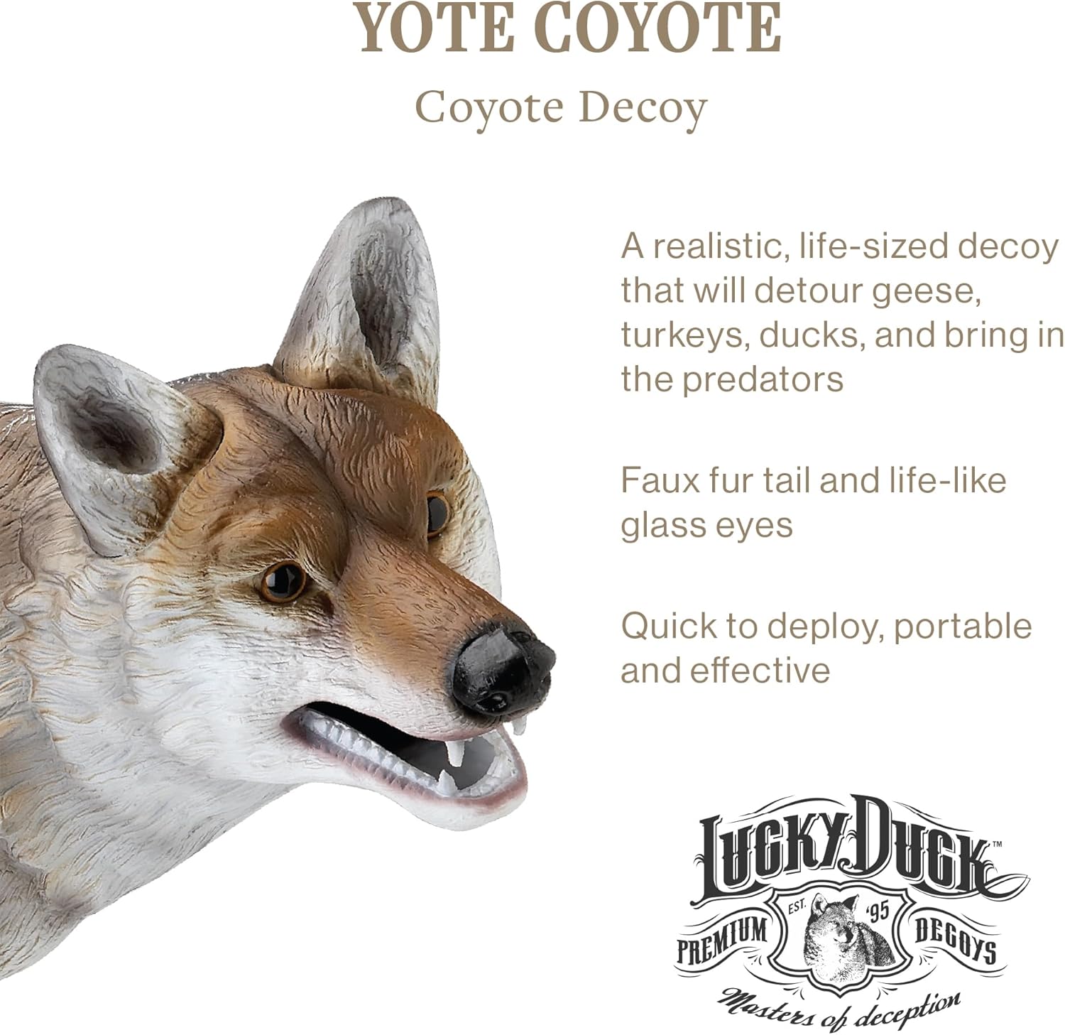 - REALISTIC – the Yote Coyote decoy is life-sized and realistic enough to detour geese, turkeys, ducks, and more or bring in the predators. The Yote’s glass eyes and faux fur tail will fool more than just pesky birds