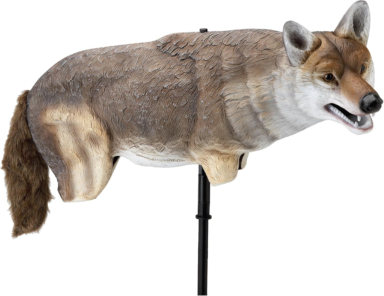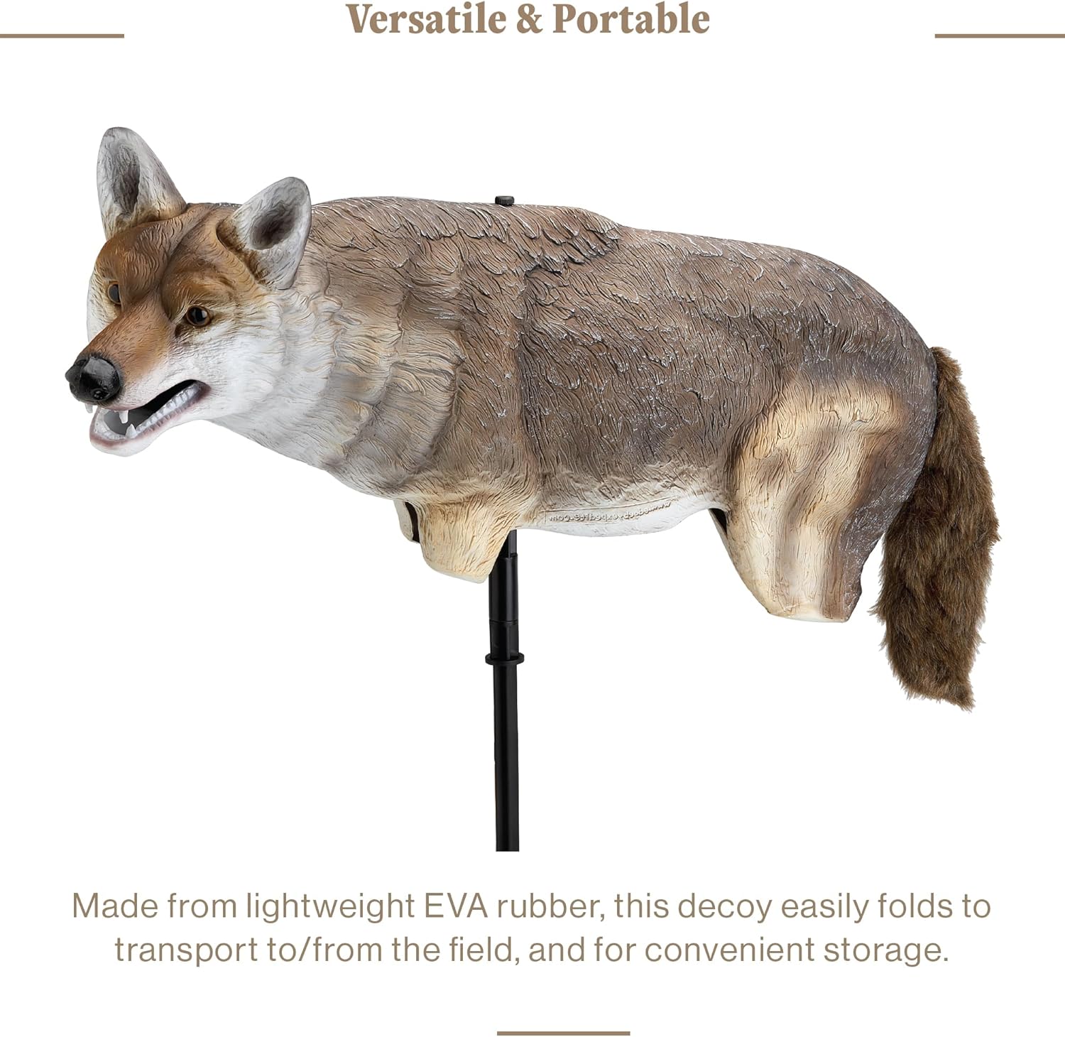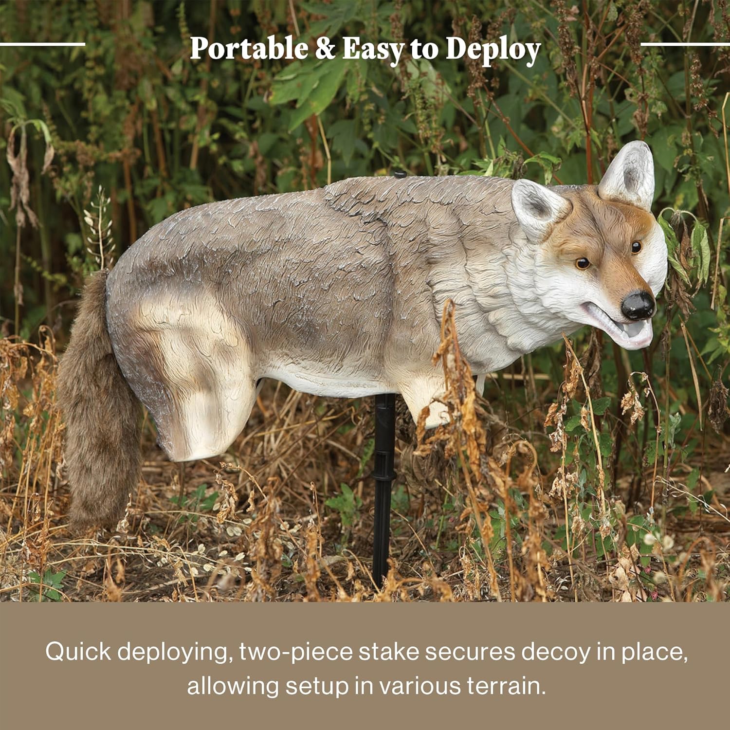 Designed for realistic effect, the Yote Coyote decoy features glass eyes and a faux fur tail that adds movement, creating an incredibly life-like presence in the field.