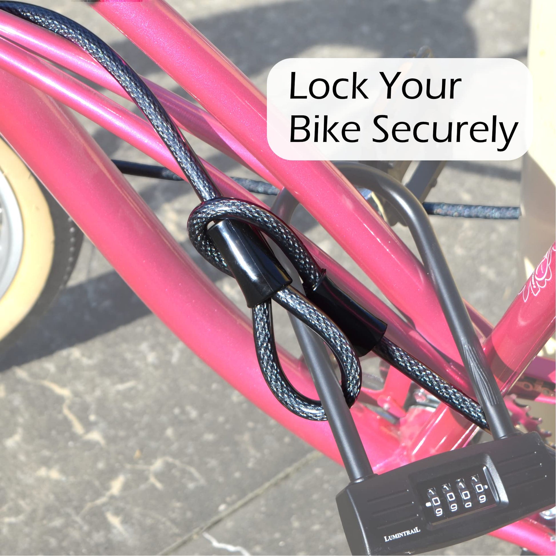 The Lumintrail security cable is perfect for securing your bicycles, motorcycles, sports equipment, gates, fences, ladders, luggage, outdoor furniture, large equipment, and more!