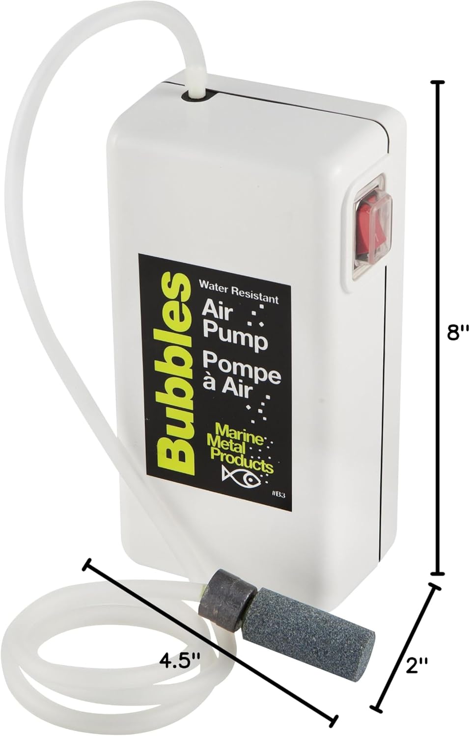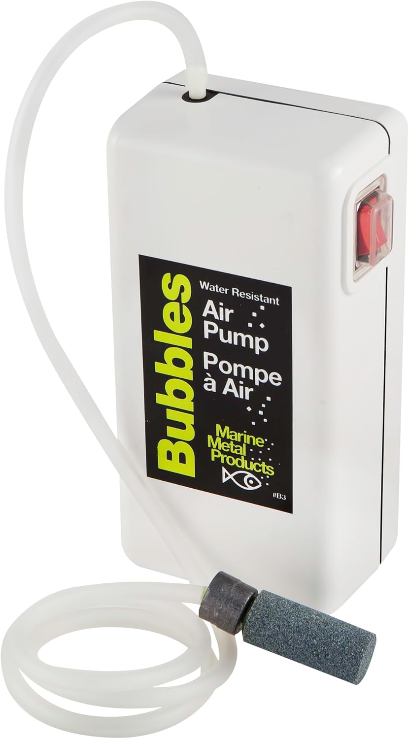 Marine Metal B-3 Bubbles Live Bait Aerator, Water Resistant Air Pump, Portable & Battery Powered
