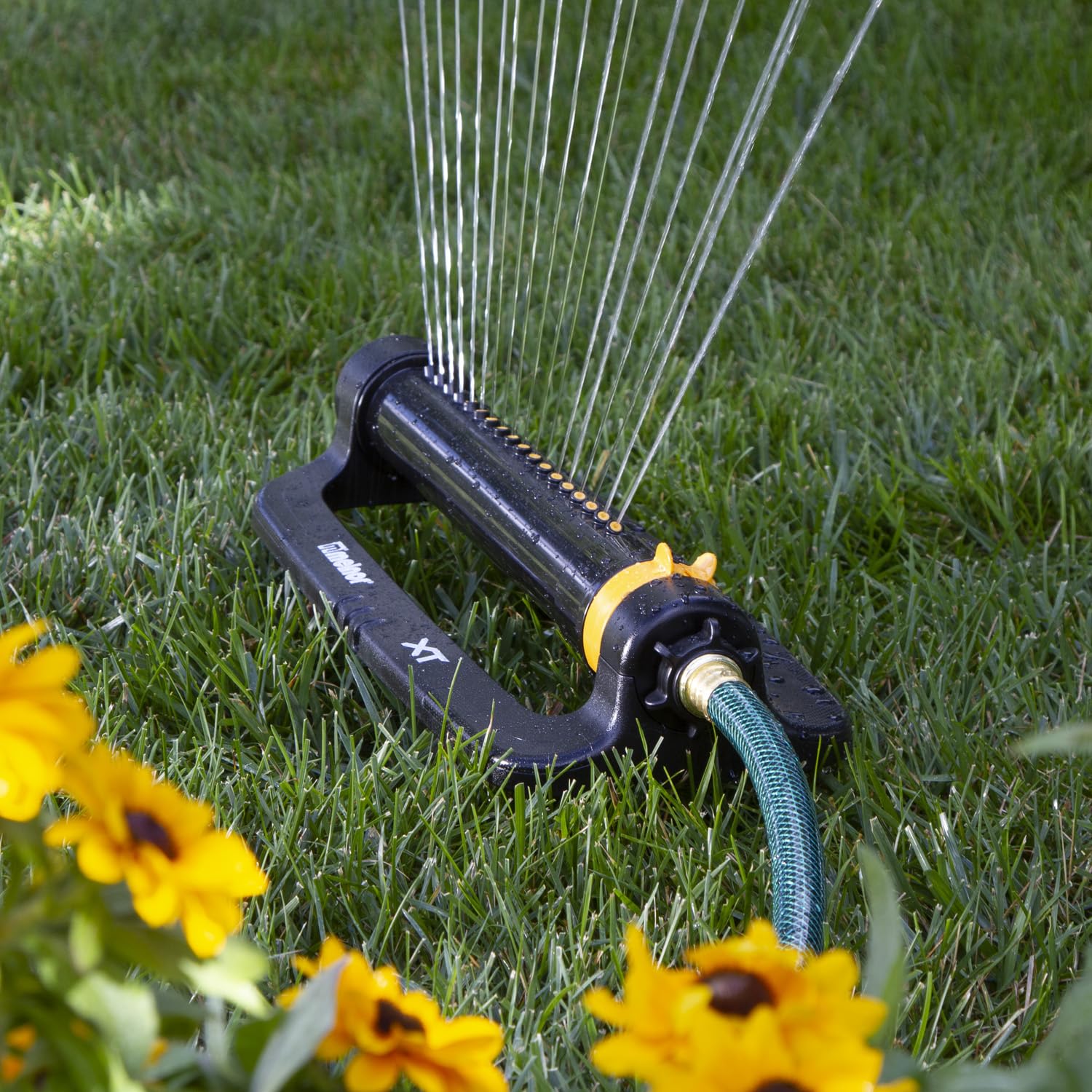 Melnor 65167AMZ XT Turbo Oscillating Sprinkler, 4,500 sq. ft., Quick Connect Bundle, 3-Way Adjustable, Black, Yellow