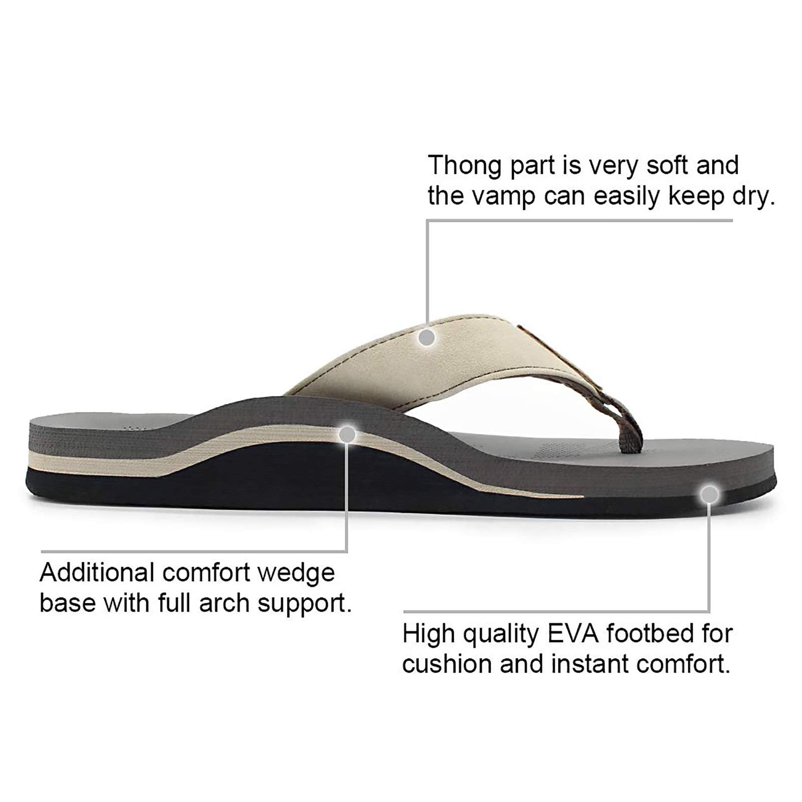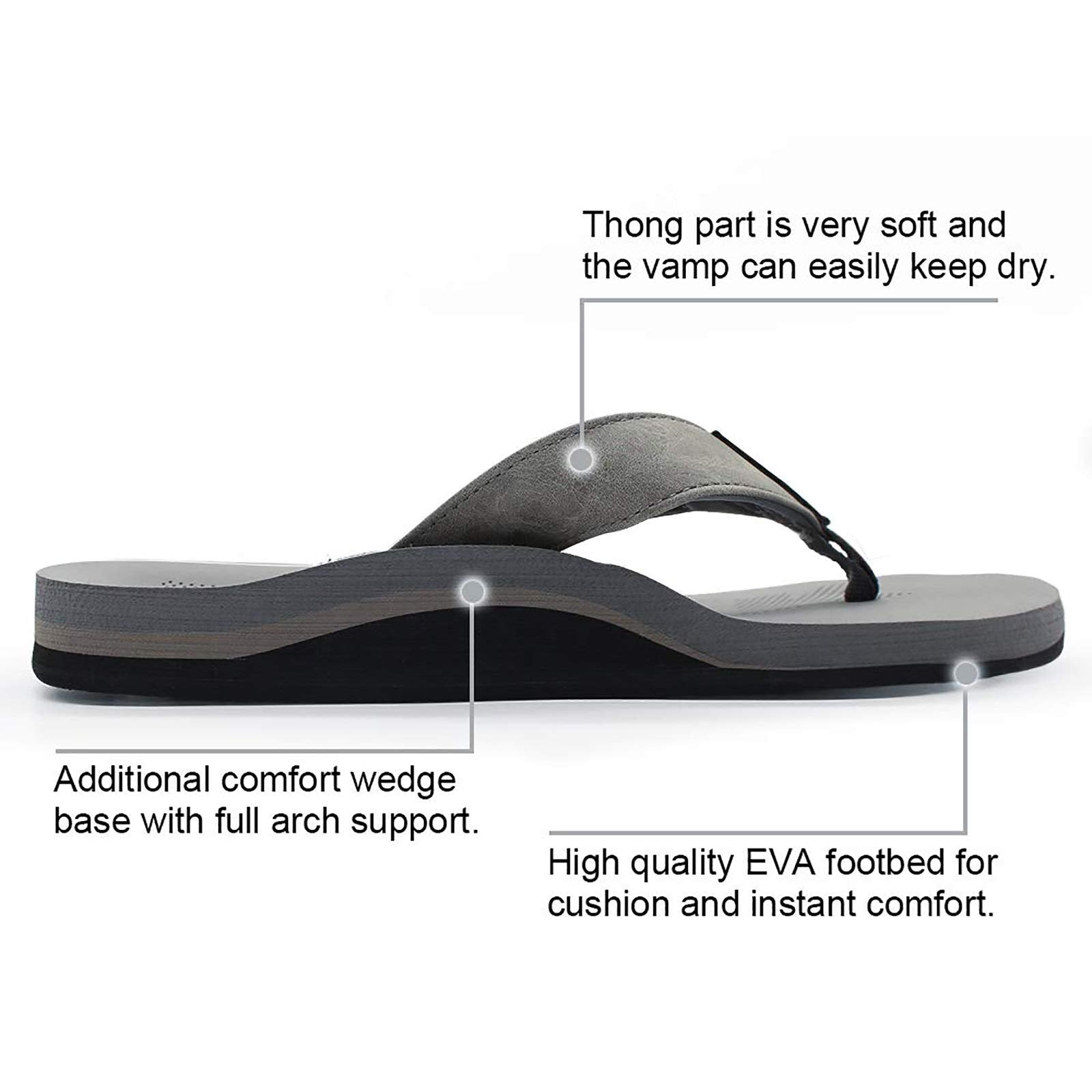 - Fantastic arch support: Mens flip flops with thick cushioned sole and rugged footbed have supplies great traction for handle long walks.