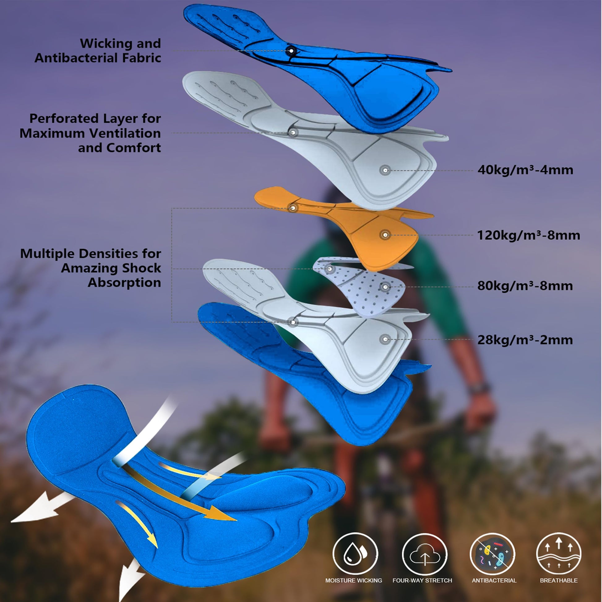 - Ergonmic 3D Padded Shorts for Men: Compact, seamless chamois with 4 way stretch and 3D, 6-layer premium protective multi-density foam padding provides comfort