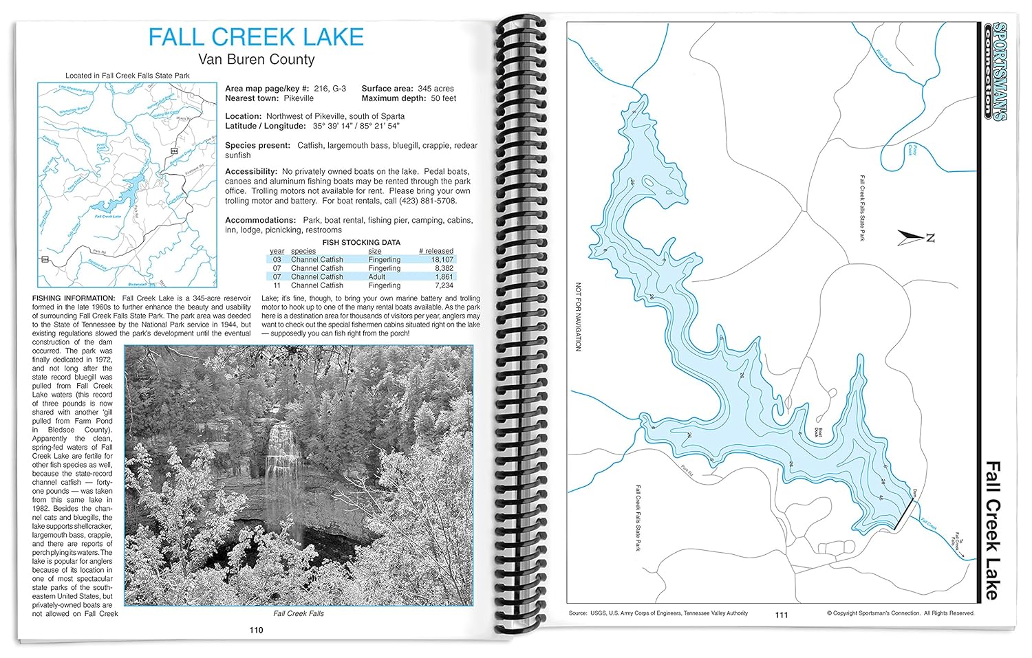 Fishing maps, detailed area road maps and exhaustive fishing information for central Tennessee fisheries are provided in this handy, 240-page, 8 ½ x 11 spiral-bound volume.