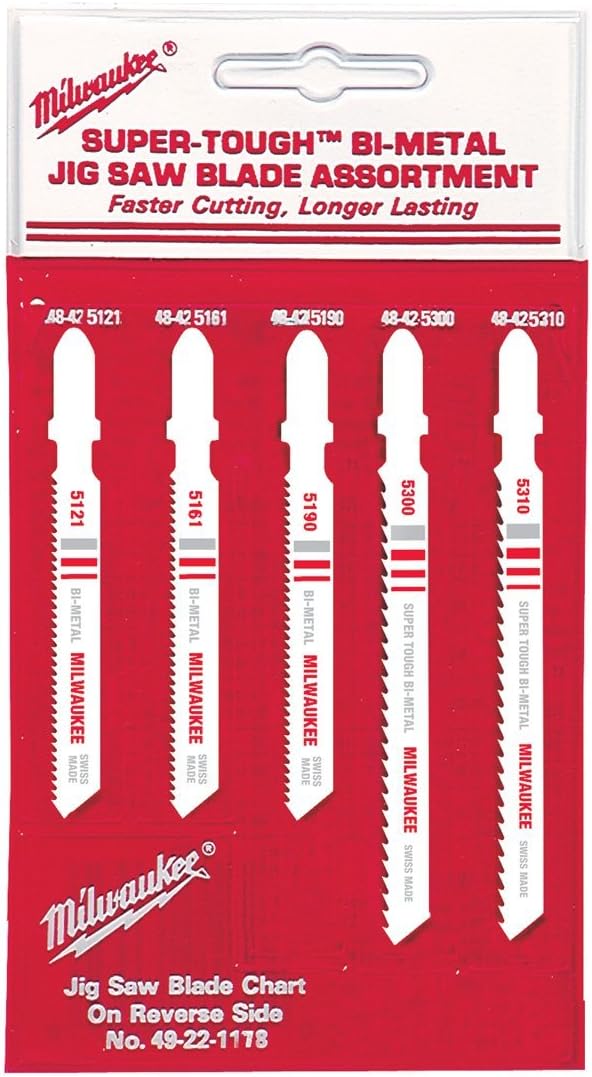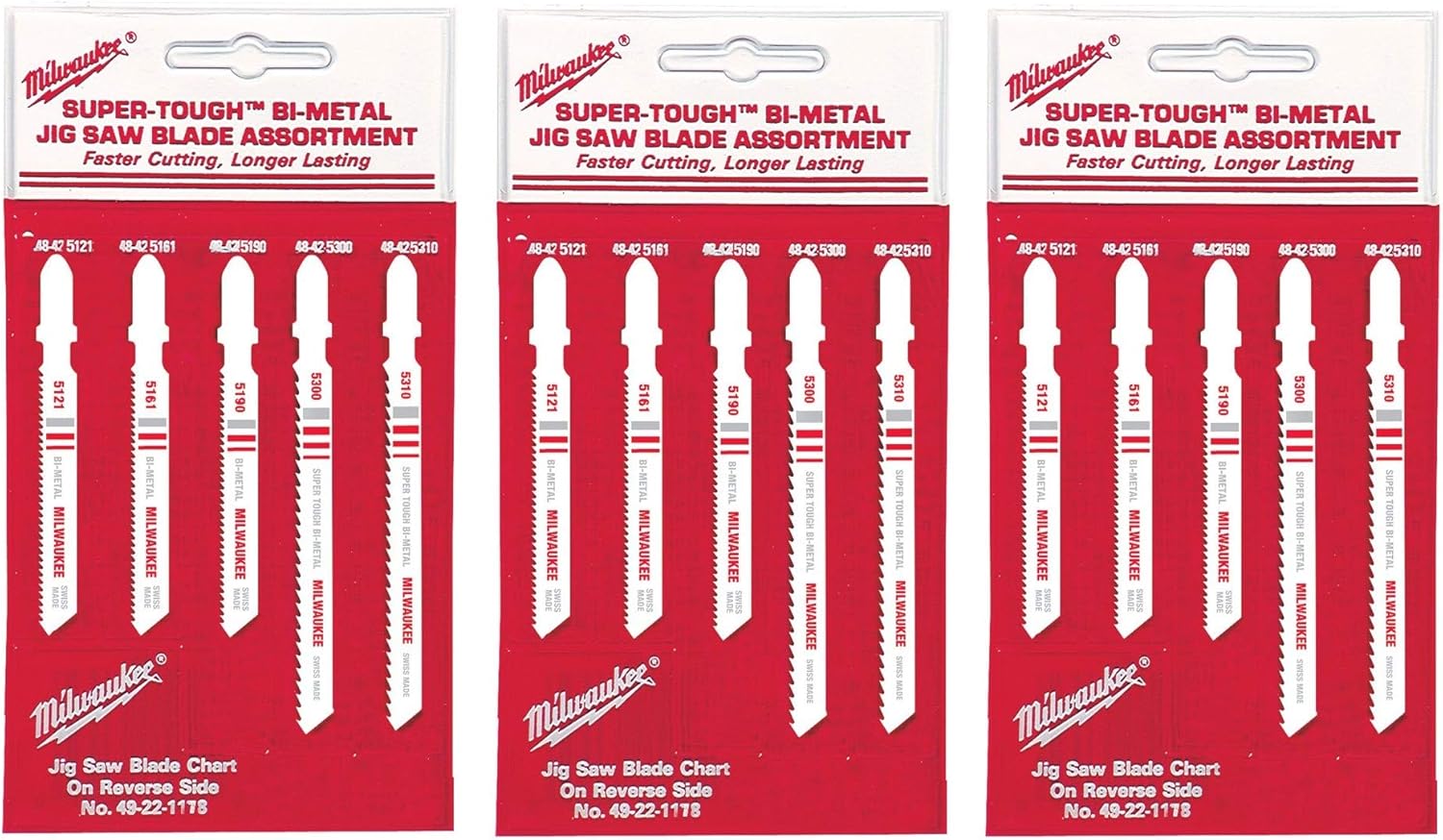 Milwaukee Bi-Metal Jig Saw blades are designed and manufactured for the professional user. Bi-metal blades last longer than high speed steel or carbon blades. Detail to the material used, tooth shape and sharpness make these blades cut clean, fast and have a longer life. These blades use a T-Shank and fit Milwaukee Jig Saws 6266-6, 6276-6, 6267-20, 6267-21 and other popular brands. Includes 5 individual blades. 3 Pack, Sold as 15 Jig Saw Blade Total