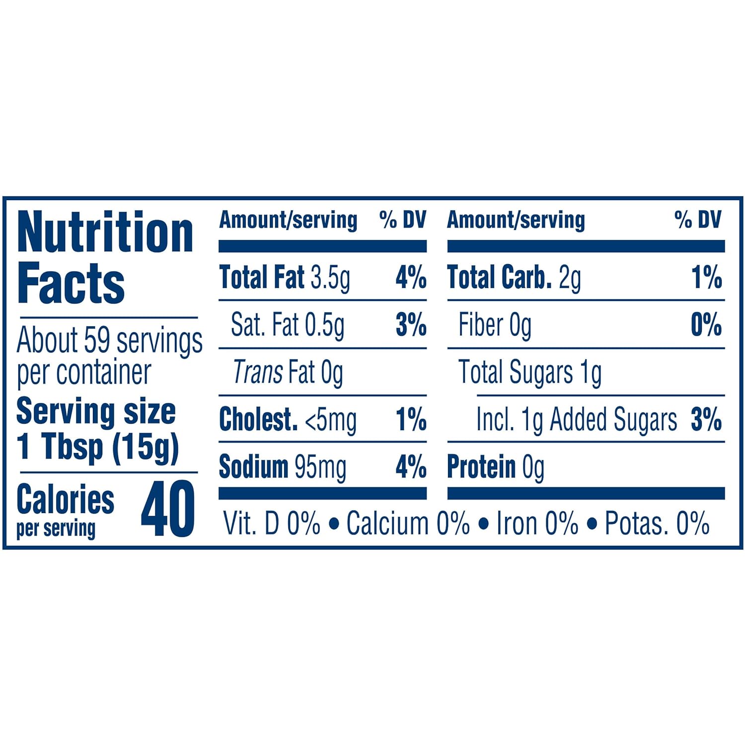 Miracle Whip Original Mayo-like Dressing delivers the perfect fusion of flavors with a bold, tangy taste that is unlike anything else you've ever had. As a spread similar-tasting to mayonnaise, Miracle Whip is known for kicking sandwiches up a notch. Try out our versatile ingredient that can be used to make tangy salad dressings and even chocolate cakes for a finger-licking adventure. Miracle Whip contains fewer calories and fat than Kraft Mayonnaise and is also keto friendly, and great for those living a low carb lifestyle. Our product contains 40 calories and 3.5g fat per serving, Kraft Mayonnaise contains 90 calories and 10g fat per serving. Try some Miracle Whip coleslaw, or blend in some honey and mustard to use it as a dipping sauce for chicken. Each squeeze bottle should be stored in the refrigerator after opening.