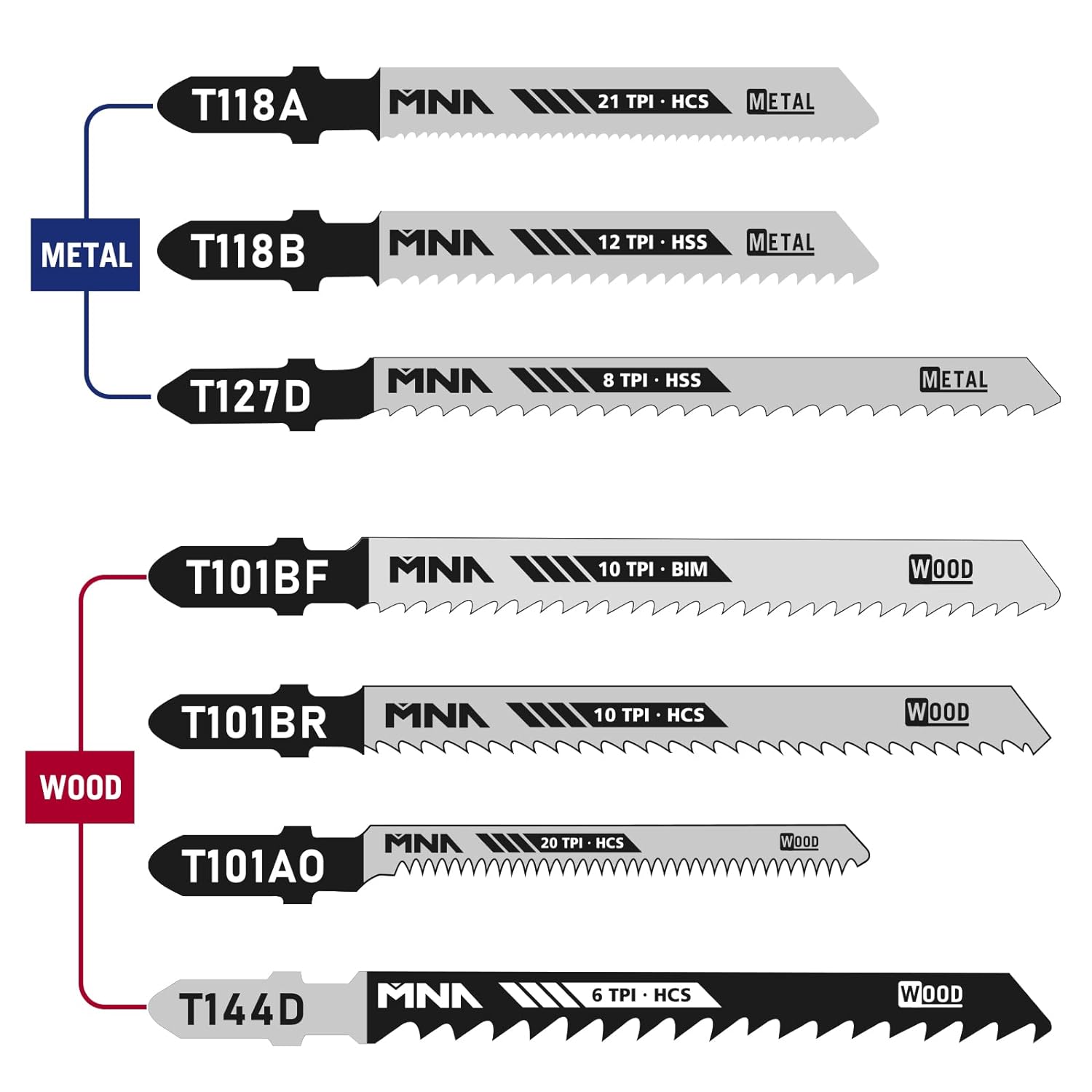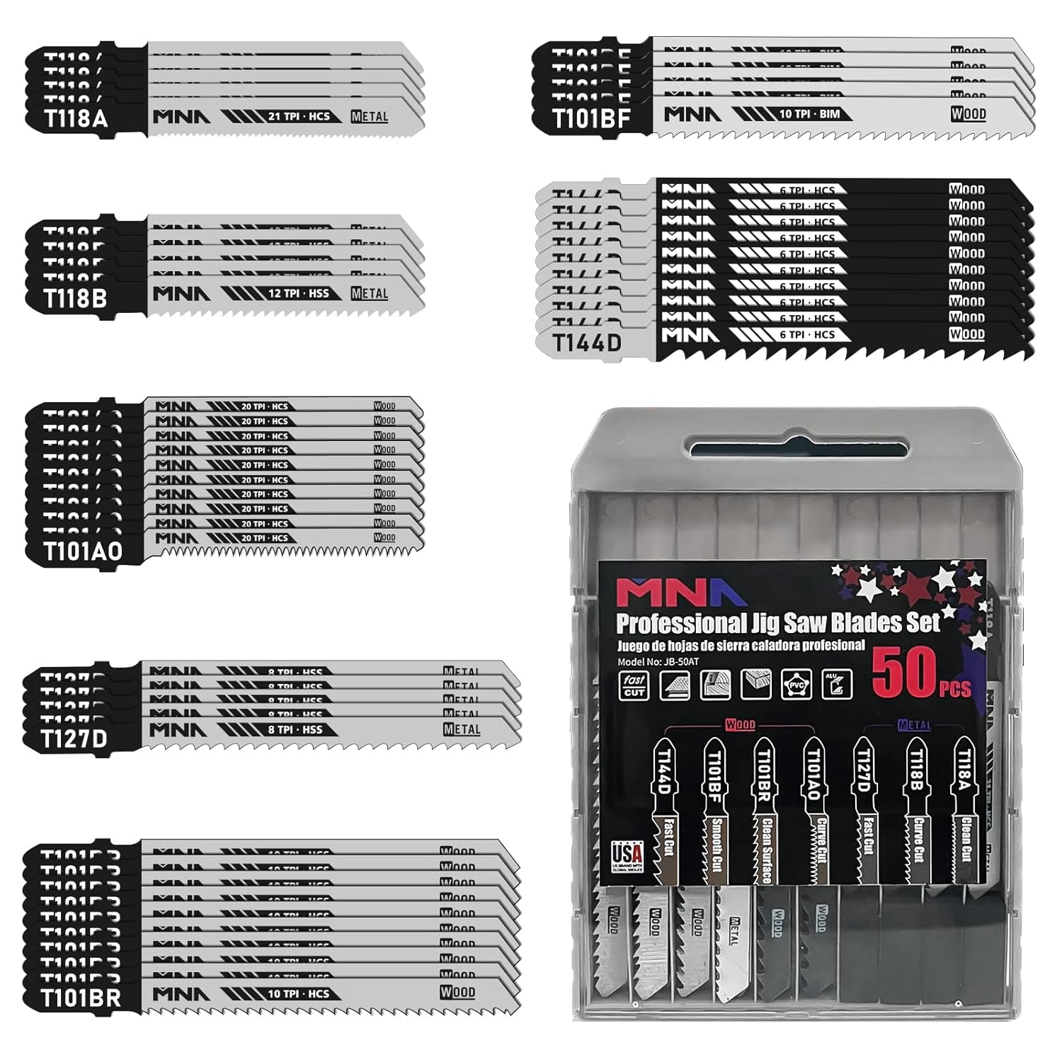 - MNA Jig Saw Blades are made under American standards. This 50 pcs Valuable set is perfect for any proposal and great for workshop or industrial use.