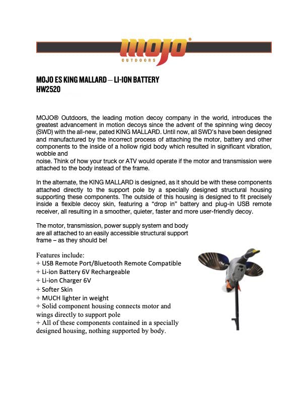 - Special removable housing: Comes enclosed in a precise-fitting decoy skin with true-to-life feather detail and color for an ultra-realistic look