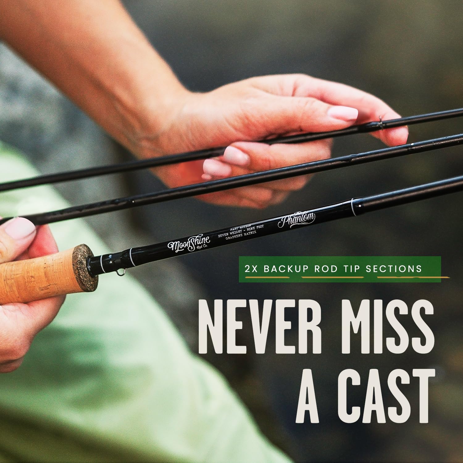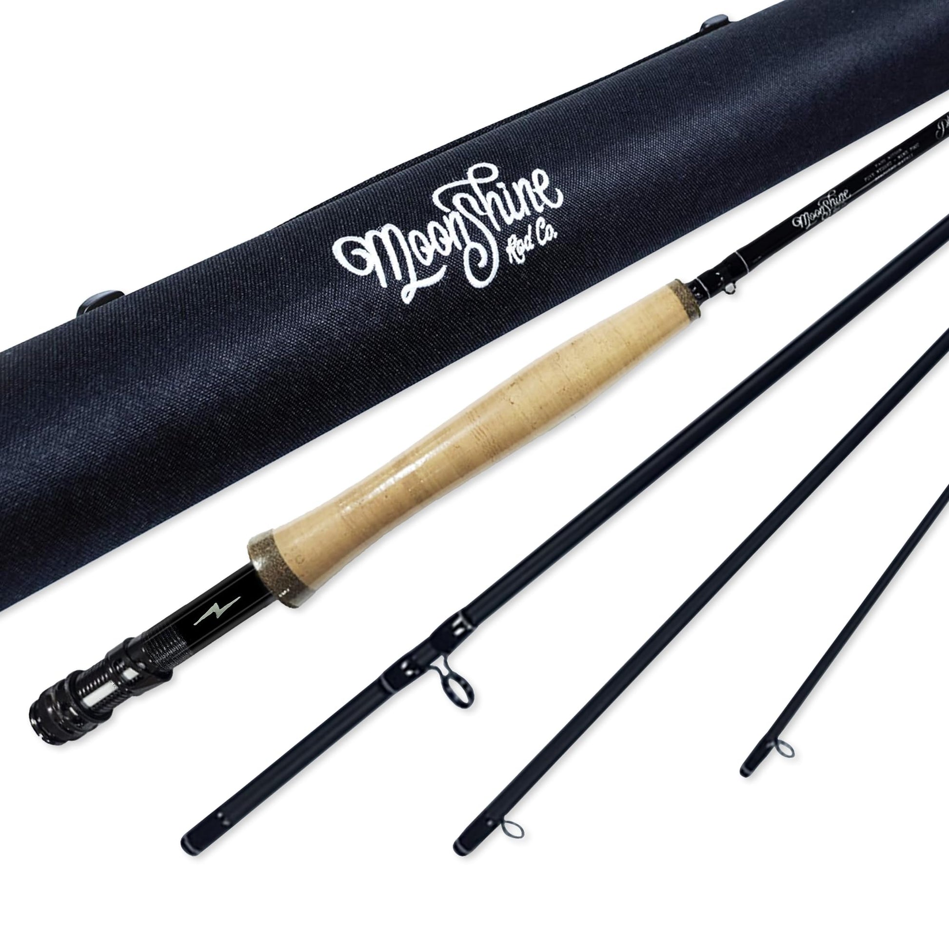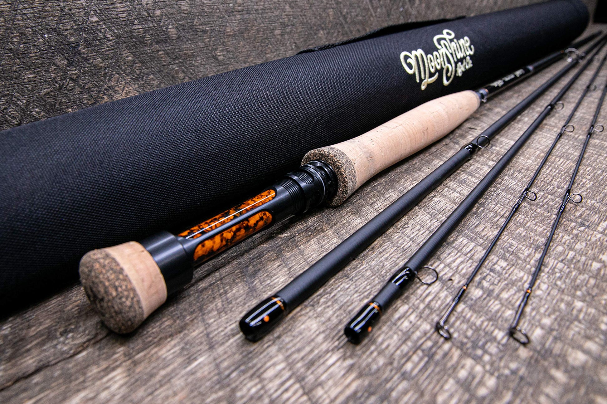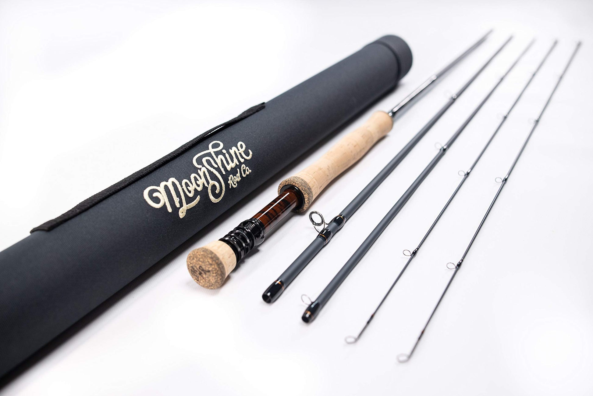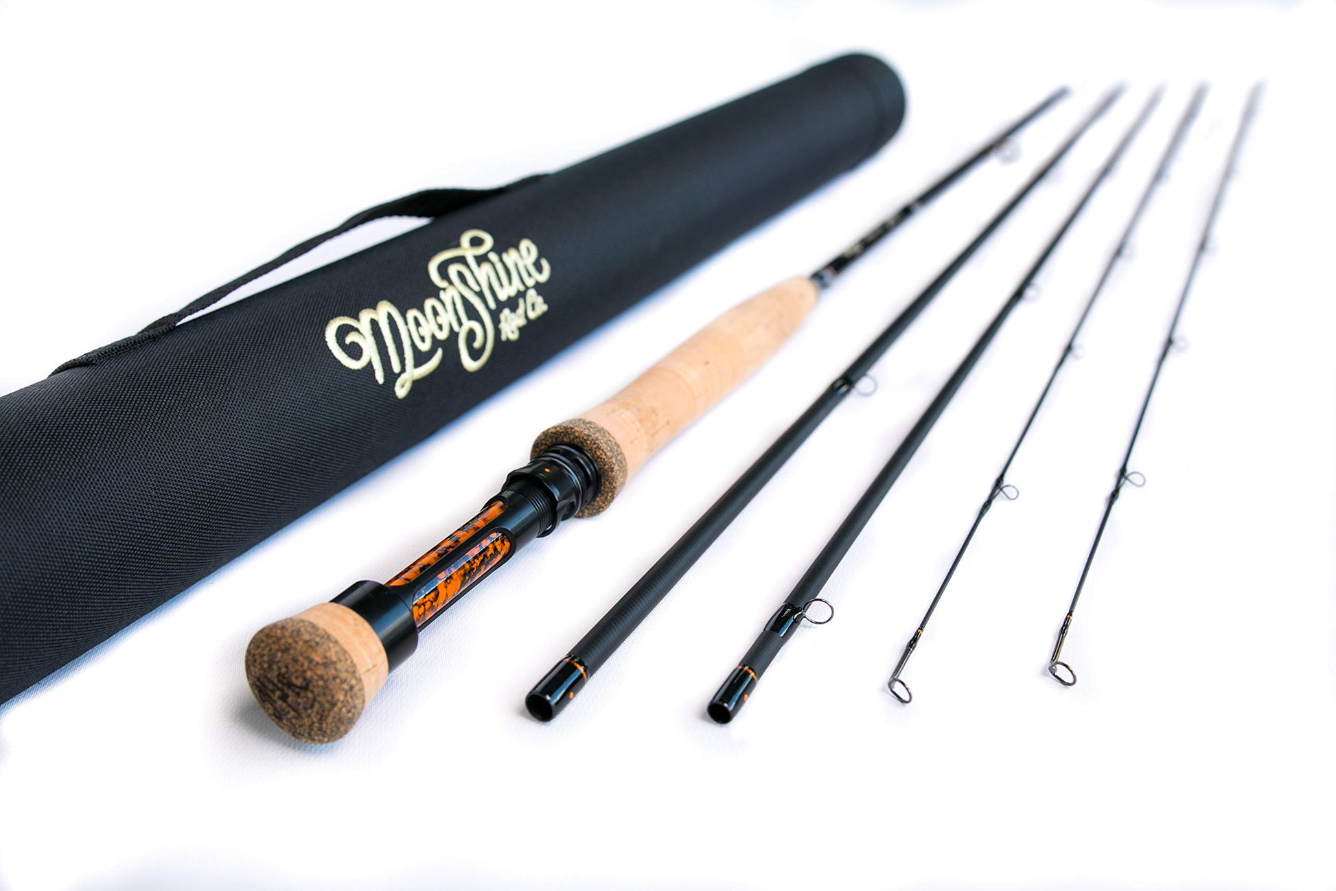 Moonshine Rod Co. Fly Fishing Rod with Carrying Case and Extra Rod Tip Section, Slow-Medium-Fast Action