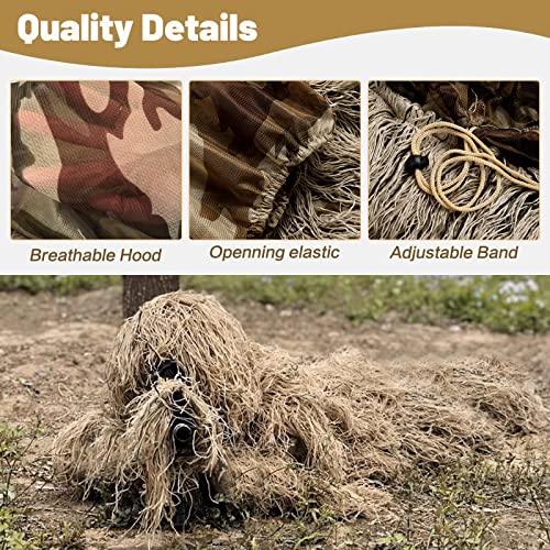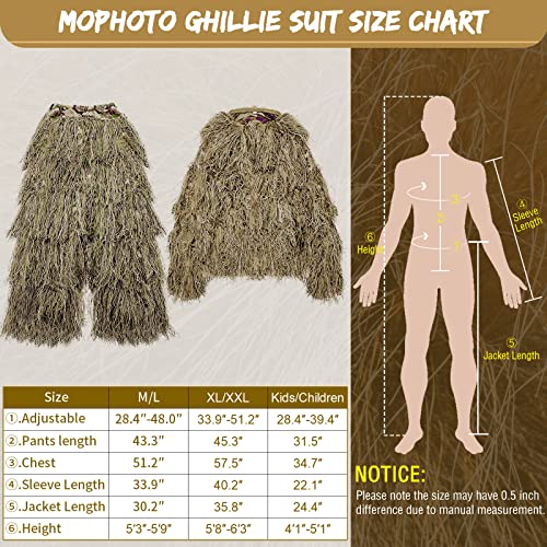 MOPHOTO 5 in 1 Ghillie Suit, 3D Camouflage Hunting Apparel Including Jacket, Pants, Hood, Carry Bag Suitable for Unisex Adults/Youth (M/L/XL/XXL)