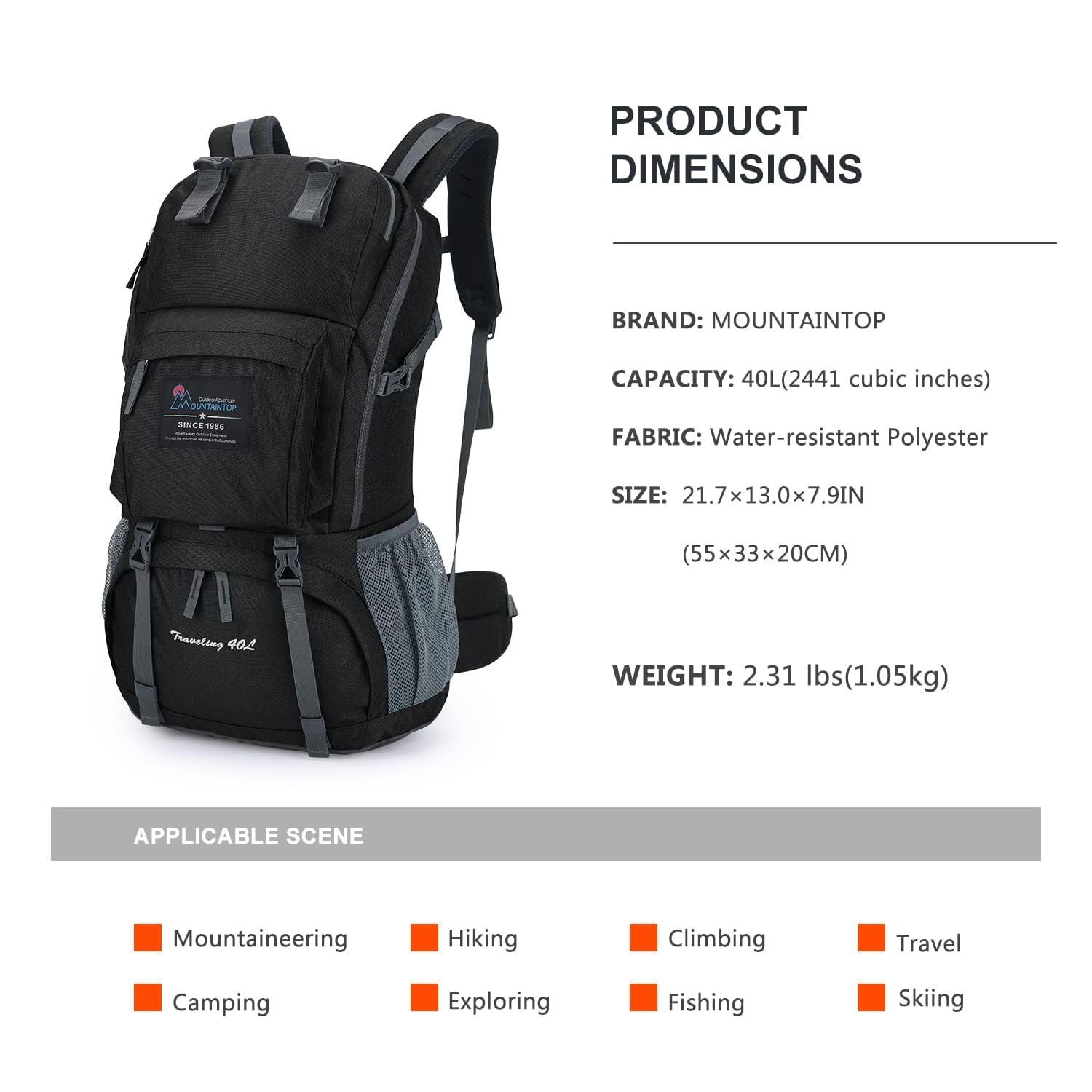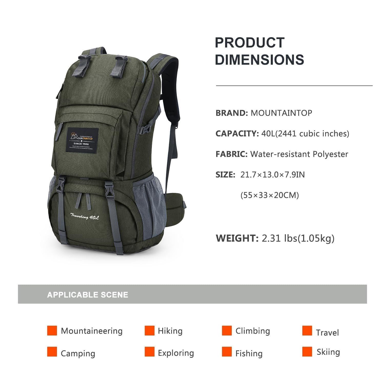 MOUNTAINTOP 40L Hiking Backpack Lightweight Travel Backpack for Men&Women Outdoor Camping Backpacking