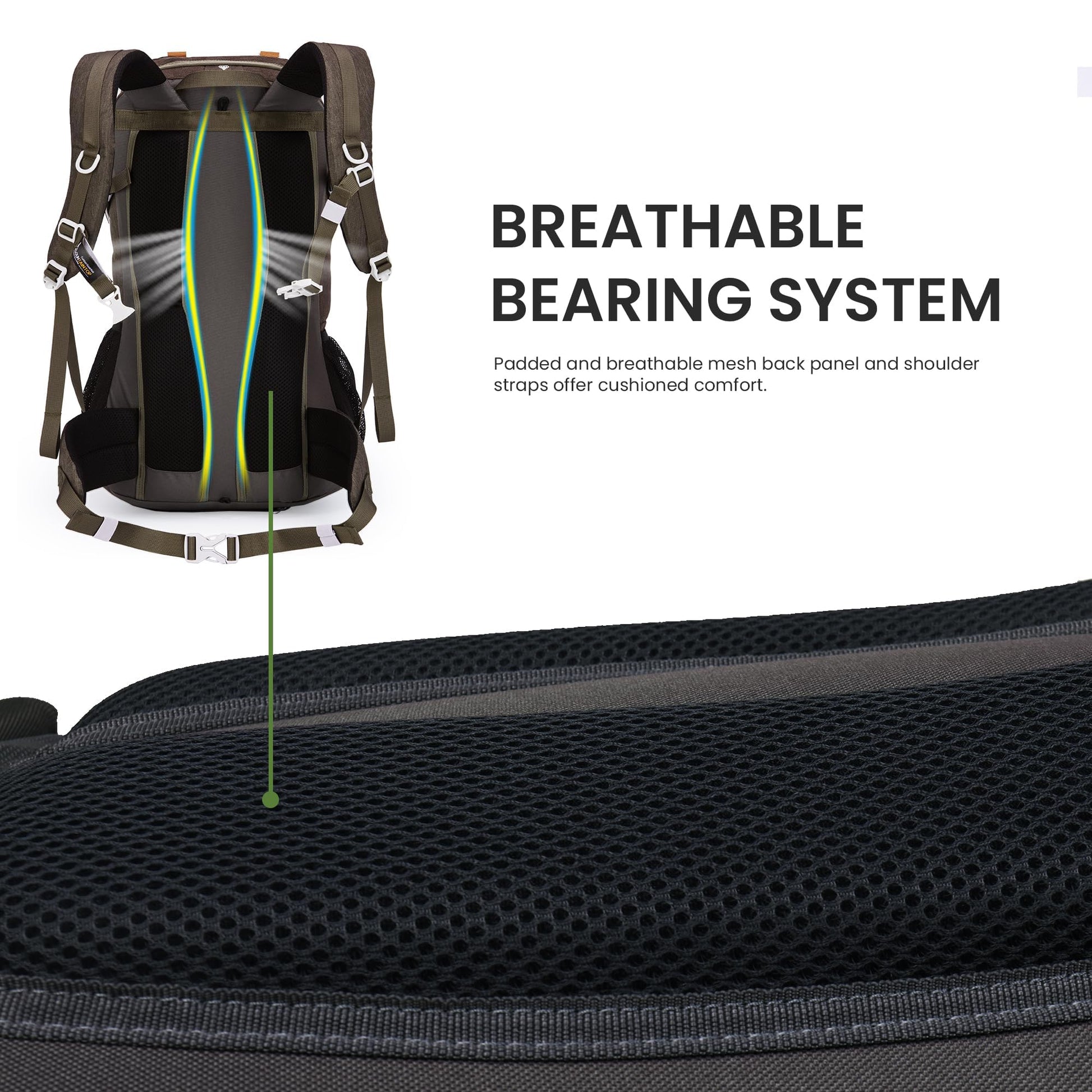 • Comfortable and Breathable: This travel backpack uses breathable mesh padding and a ventilated back system to keep your items dry and ventilate your back. The ergonomically designed structure helps to evenly distribute the weight, making it comfortable to carry while hiking.