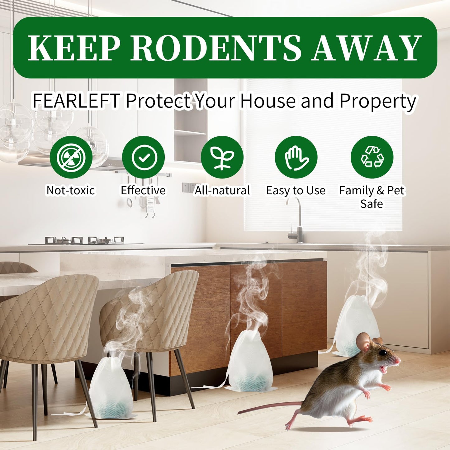 - 【Humane Natural Rodent Repellent】Repel rodents without causing harm, the rat repellent works by emitting multiple strong minty scents, the strong stimulation makes rodents feel uncomfortable and forces them to run away. It is an ideal to replace mousetraps, single use sticky traps or pest repellers