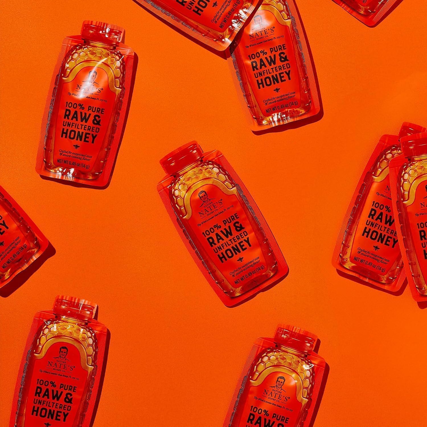 Nate's Honey Minis - Single-Serve 100% Pure, Raw & Unfiltered Honey – 0.49oz Packets, 20ct box