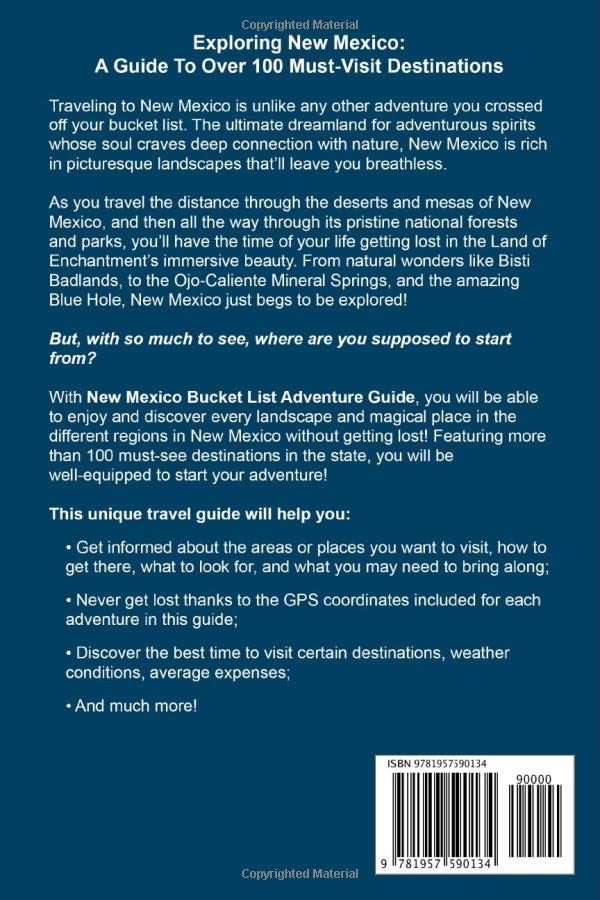 With New Mexico Bucket List Adventure Guide, you will be able to enjoy and discover every landscape and magical place in the different regions in New Mexico without getting lost! Featuring more than 100 must-see destinations in the state, you will be well-equipped to start your adventure!
