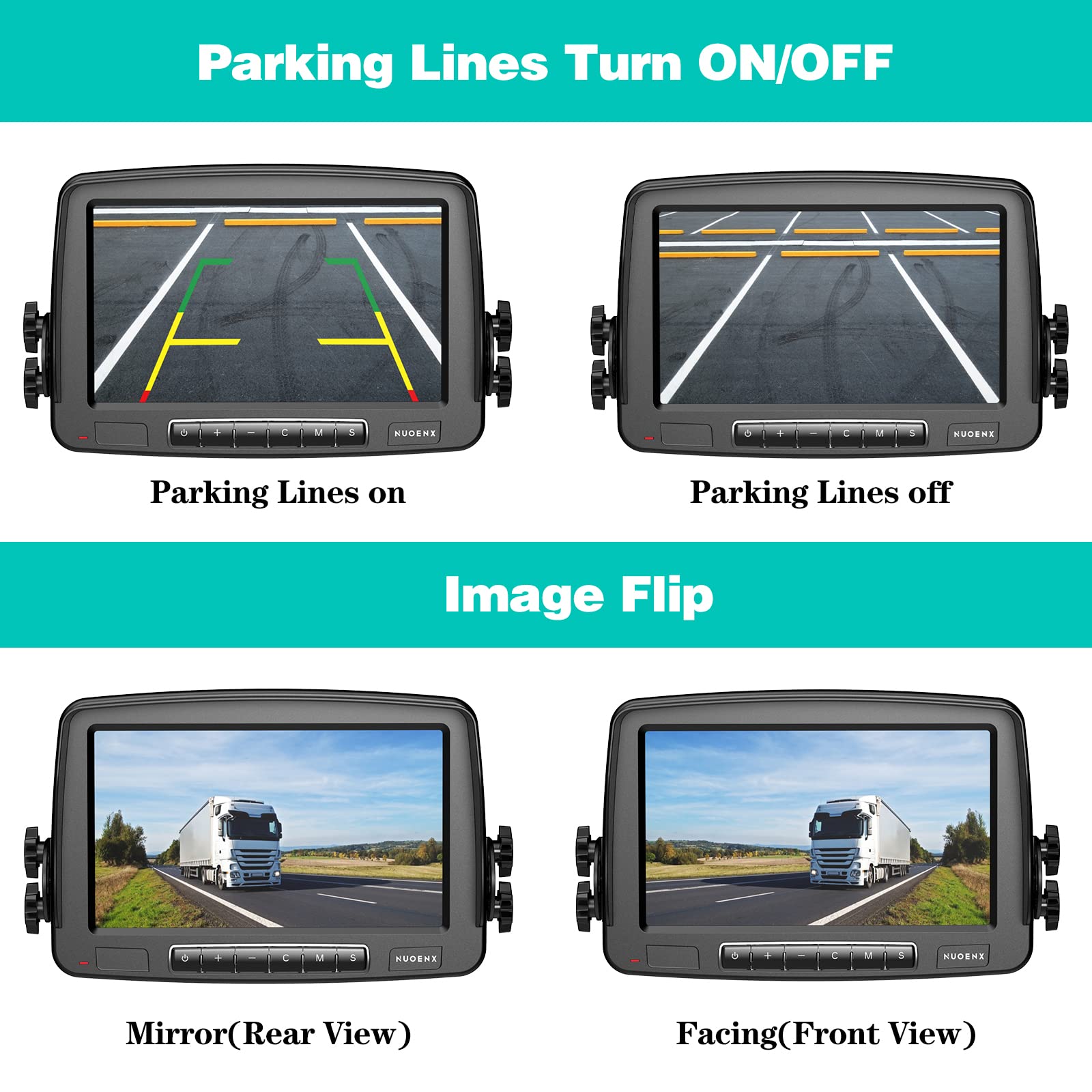 Nuoenx Wireless Backup Camera, 7 Inch Monitor Rear View Camera System for RV, Trailers, Trucks, 5th Wheels, Support 2 Cameras, IP69 Waterproof 18 LED IR Night Vision 152° View Camera, DIY Guide Lines
