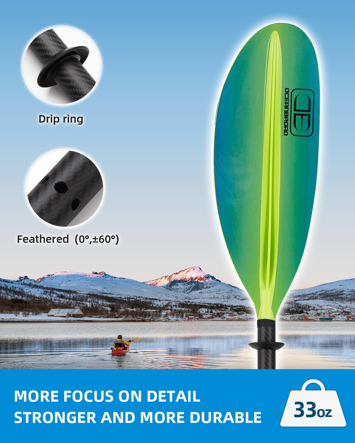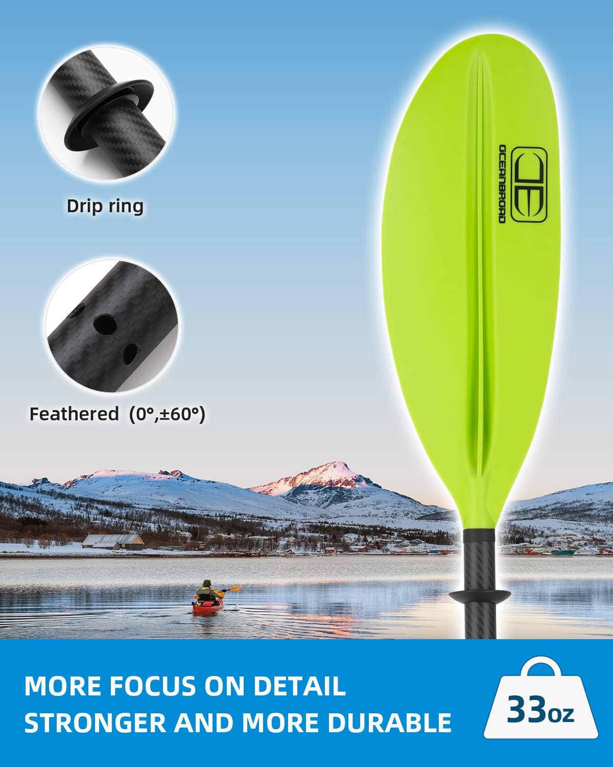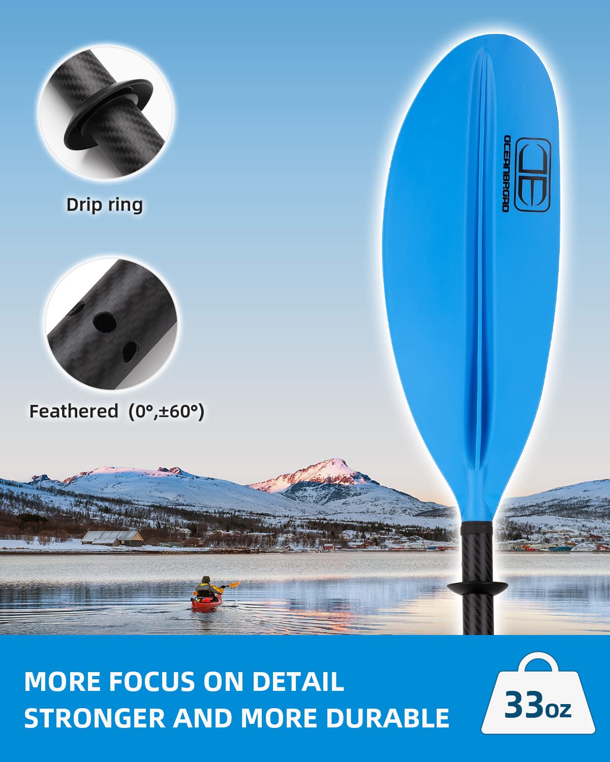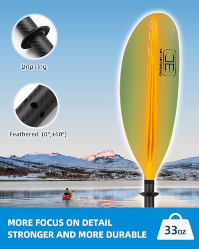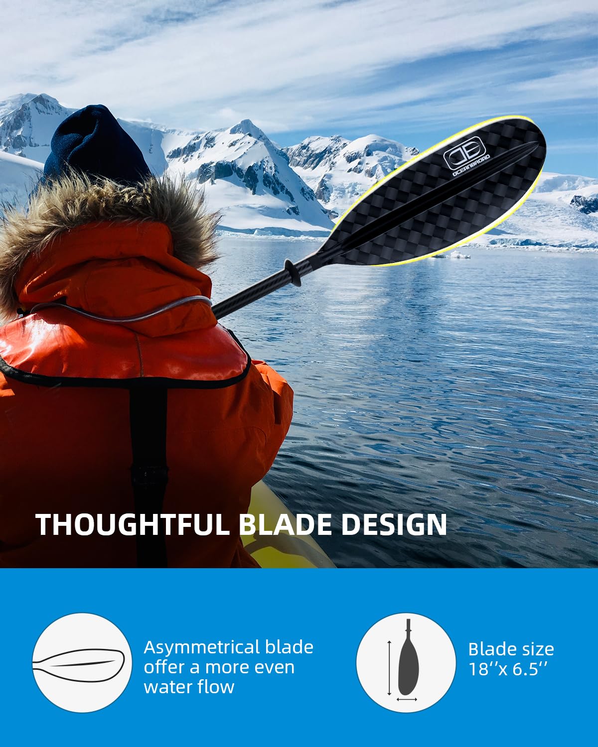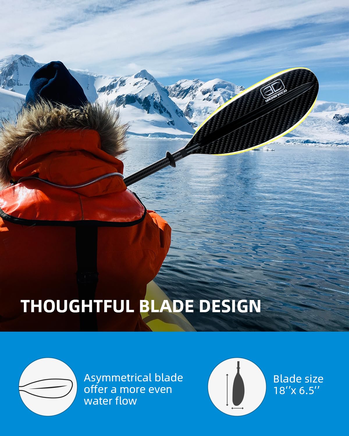 - 【Durability Meets Efficiency】Built with carbon fiber composite shafts and UV-stable glass fiber-reinforced PP blades, this kayak paddle withstands saltwater corrosion and extreme conditions. Rigorous engineering ensures reliability across lakes, rivers, and oceans.