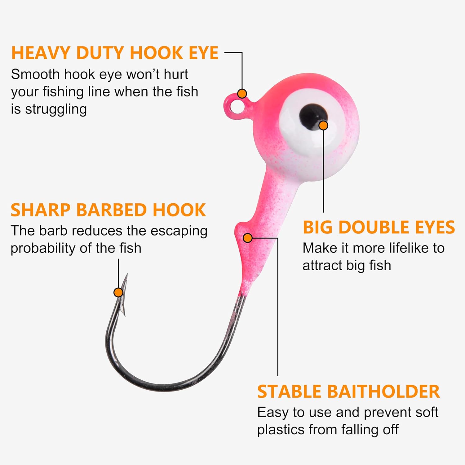 - 【APPLICATION】Our round ball fishing jigs heads are idea for fishing crappie, walleye, bluegill, trout, bass, perch, pike, northern, muskie. etc. A great fishing gift to fishing lovers and beginners!