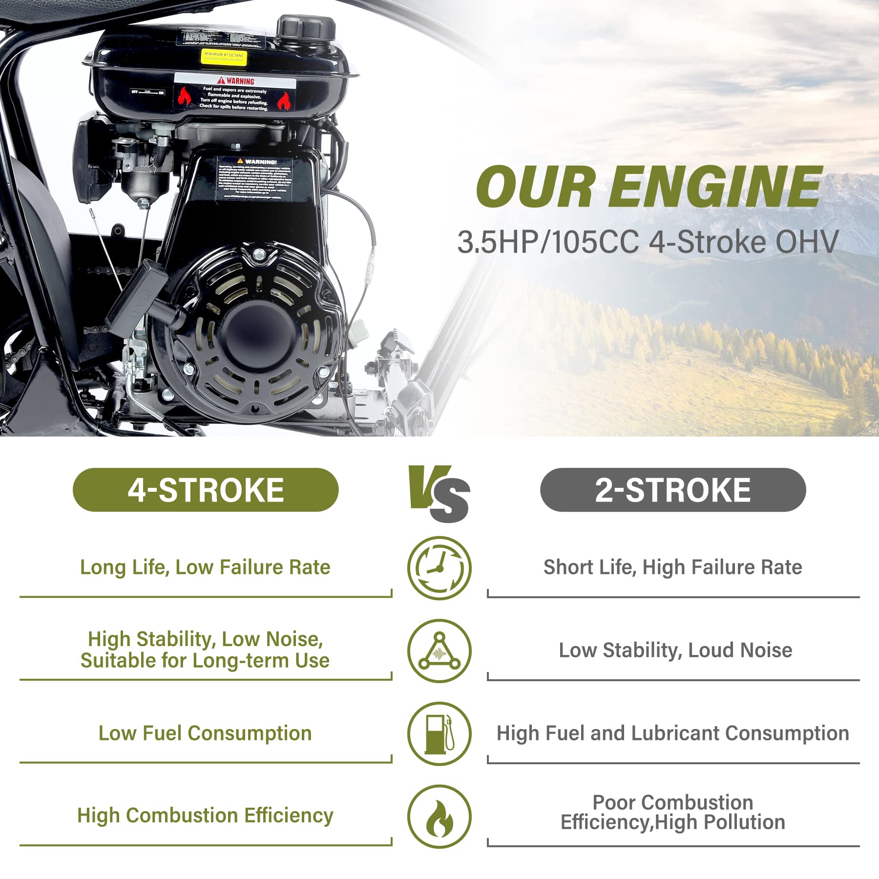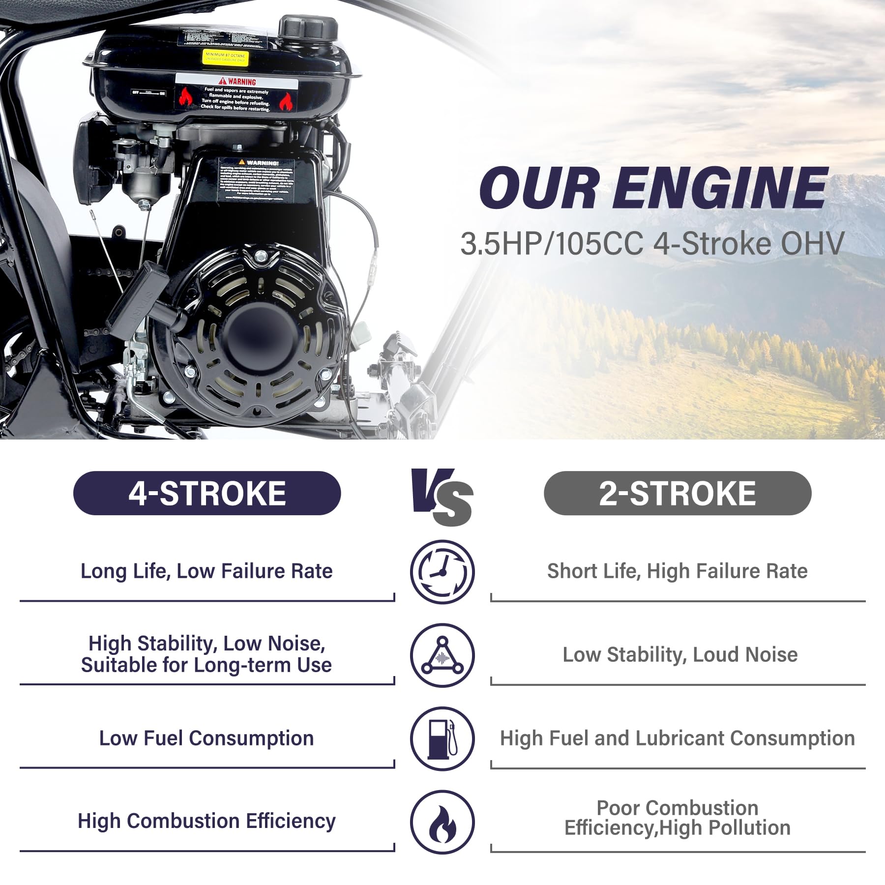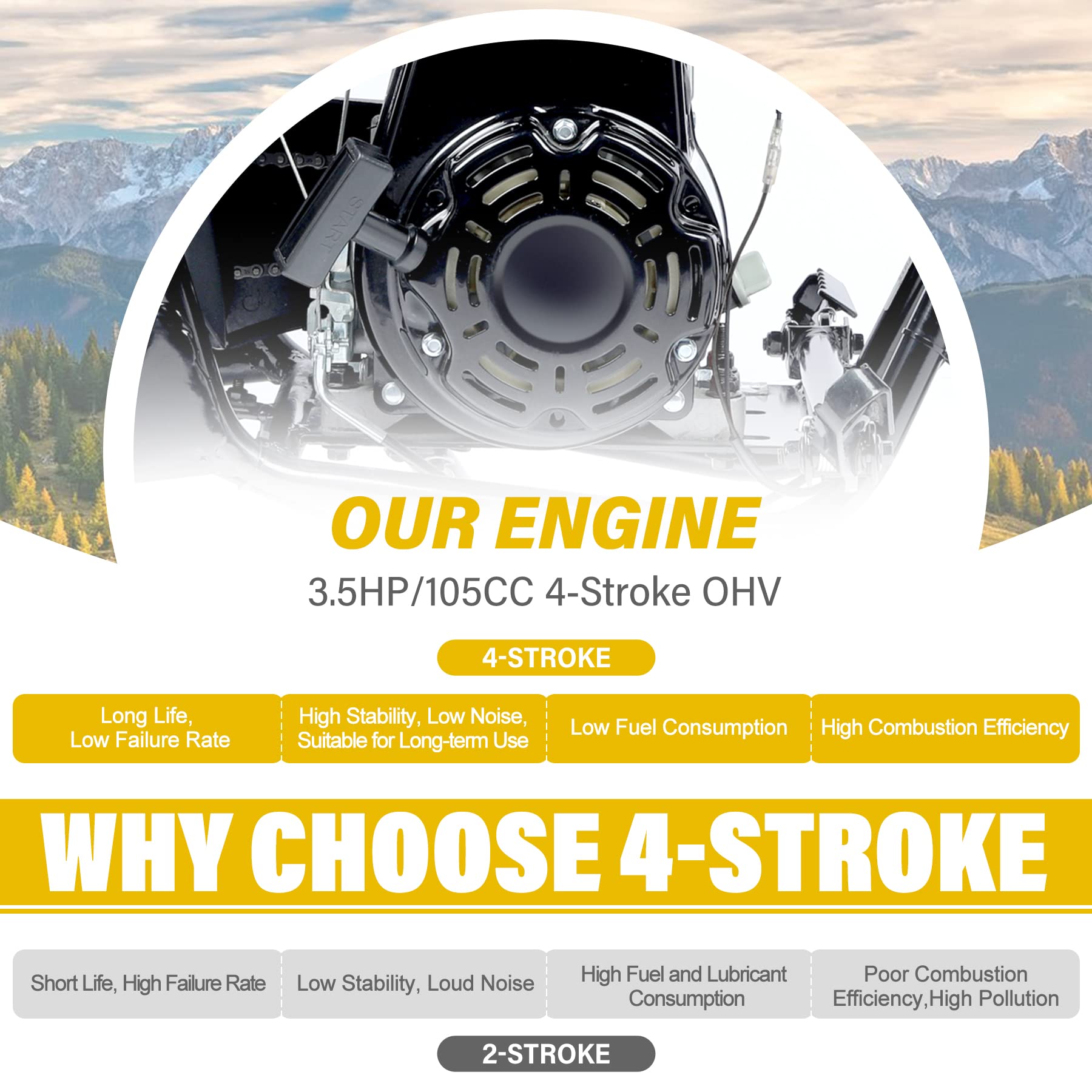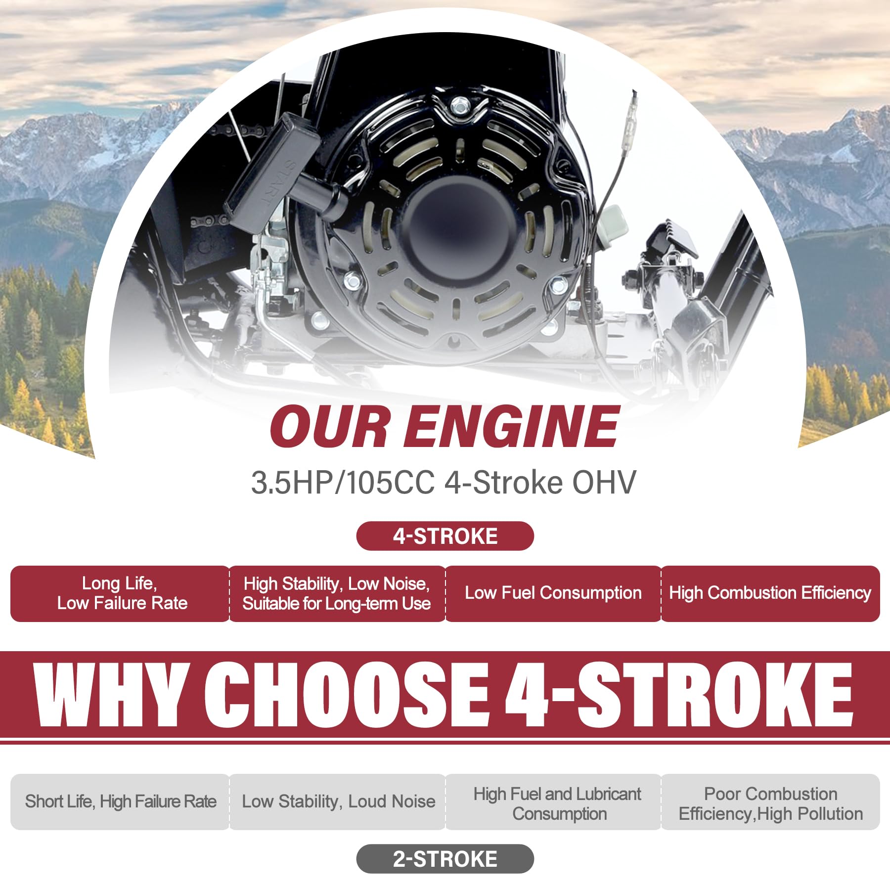 | Engine | 105CC 4-Stroke OHV | 105CC 4-Stroke OHV | 98CC 4-Stroke OHV | 1000W Motor |