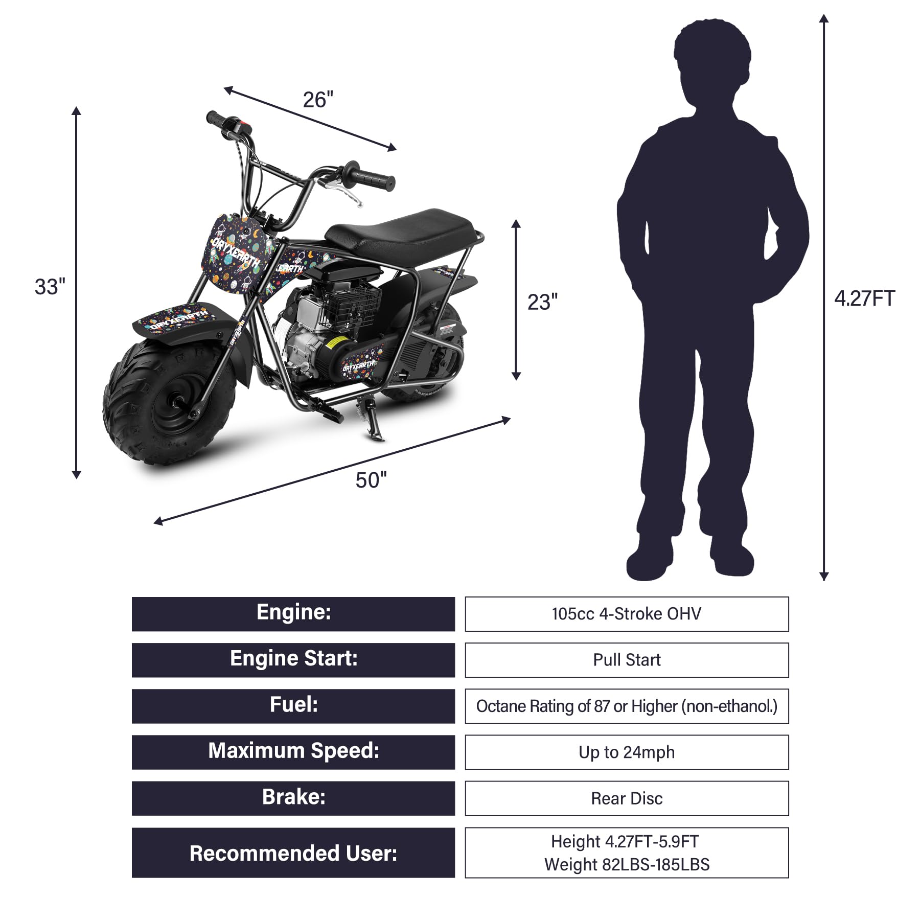 Oryxearth Mini Dirt Bike for Kids, 105CC 4-Stroke Kid Gas Powered Off-Road Pocket Pit Trail Motorcycle W/EPA Approved, Up to 24 Mph Weight Support 185 LBS