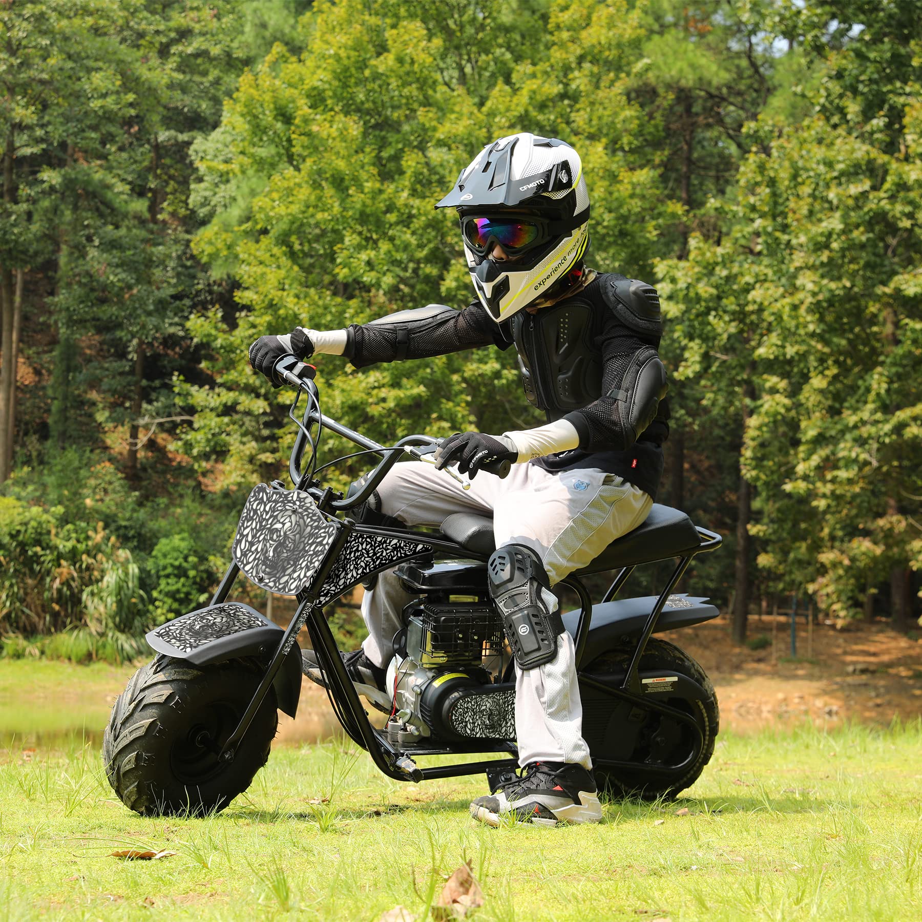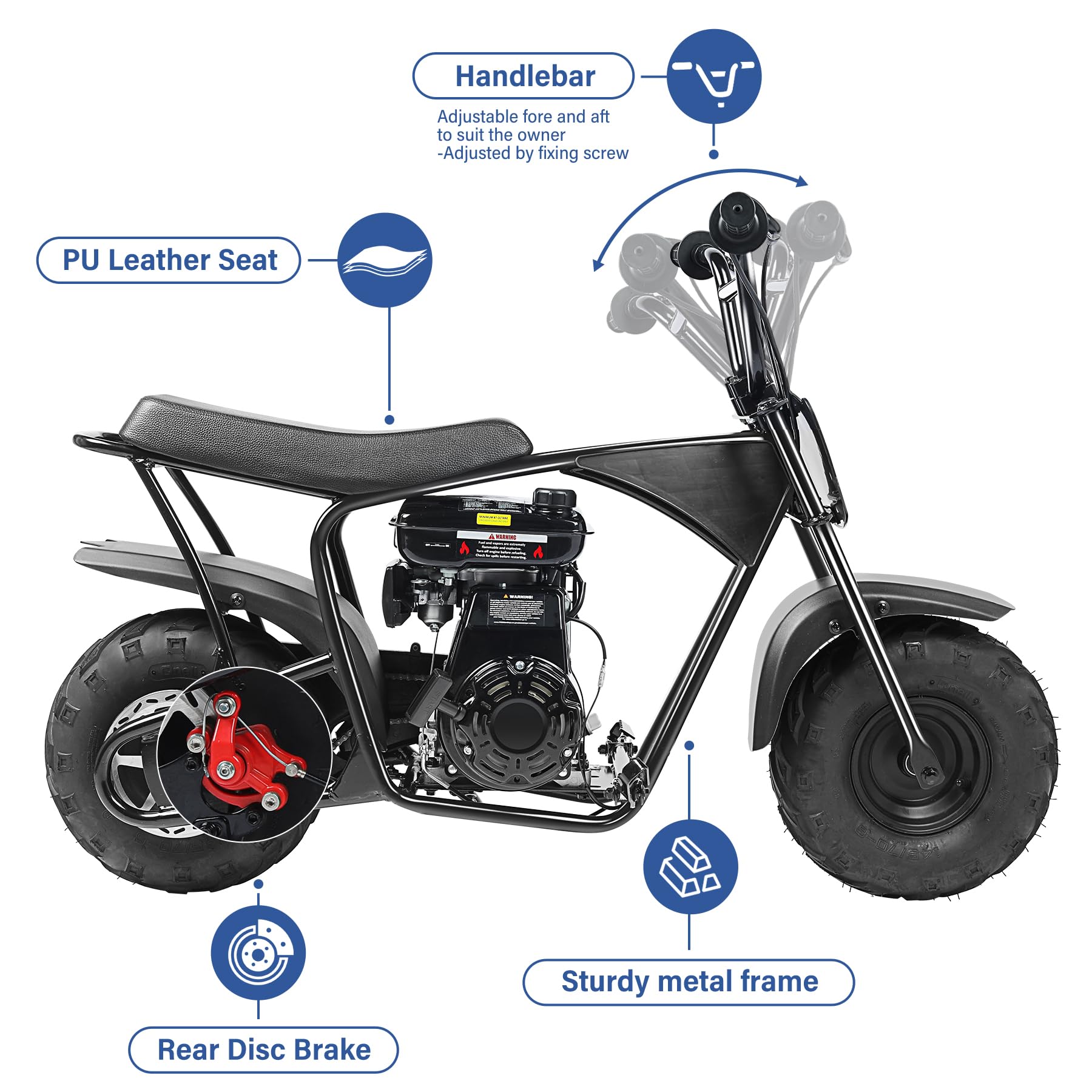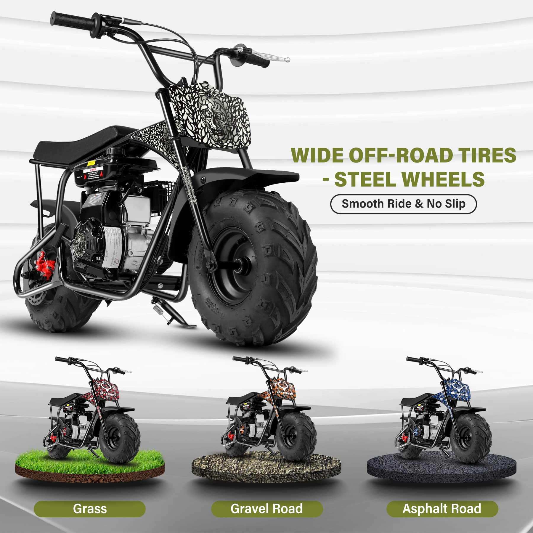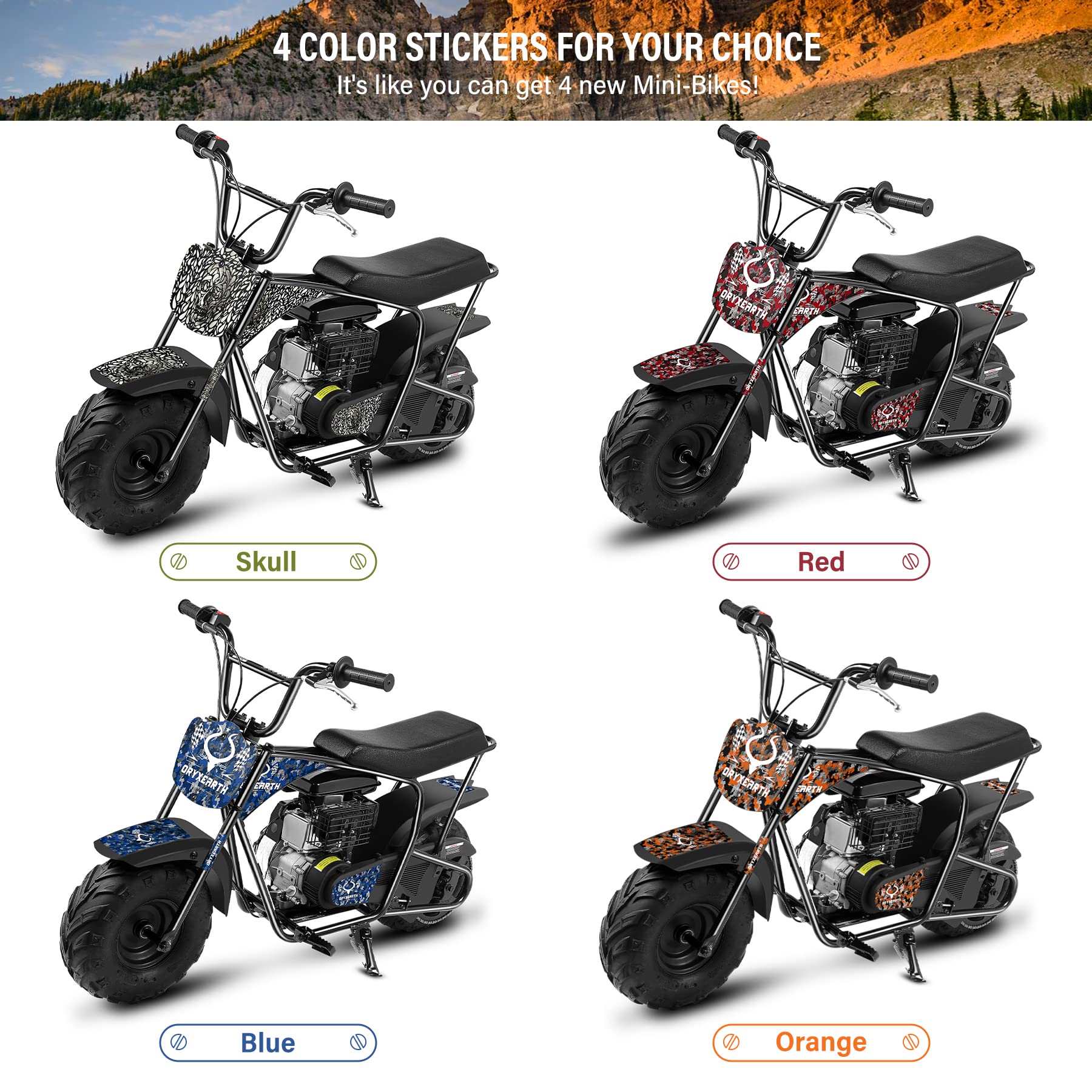 - 【SUITABLE FOR BOTH KIDS AND ADULTS】4-stroke air-cooled engine surpasses virtually any other mini bike on the market. This nostalgic off-road motorcycle is suitable for kids, teenagers, adults, girls with height 4.27FT-5.9FT under 185LBS. Recommended age 8+. Ideal for beginner dirt bikes choice, and a cool gift for them