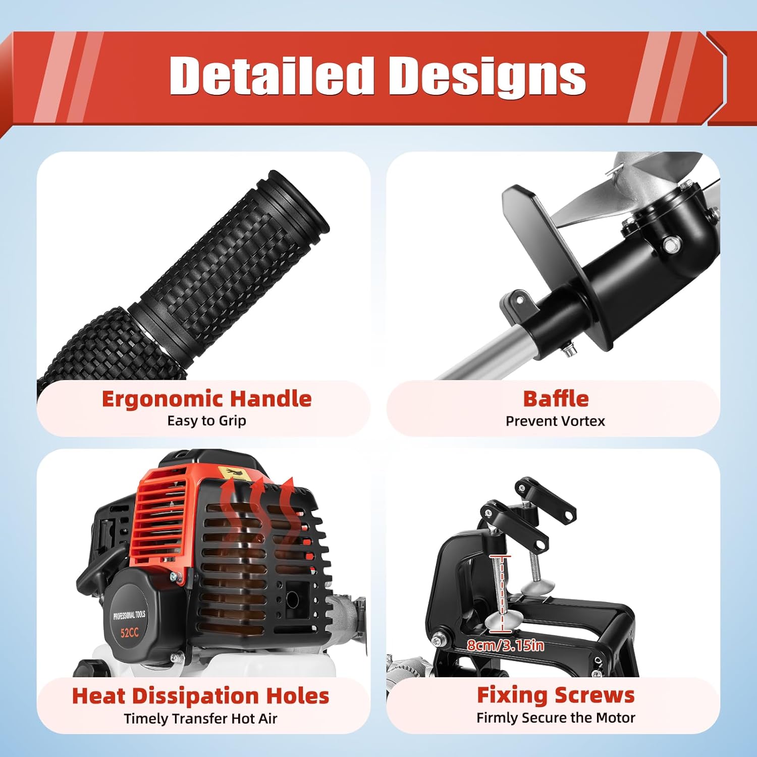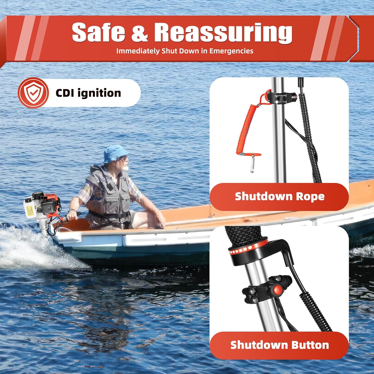 - Strong Power: A 1700W power and 2.3 horsepower 2-stroke engine with a speed range of 4500-8500 rpm provides you with unparalleled speed. The streamlined design of the 6.7in three-blade propeller can reduce drag and provide stronger power during operation.