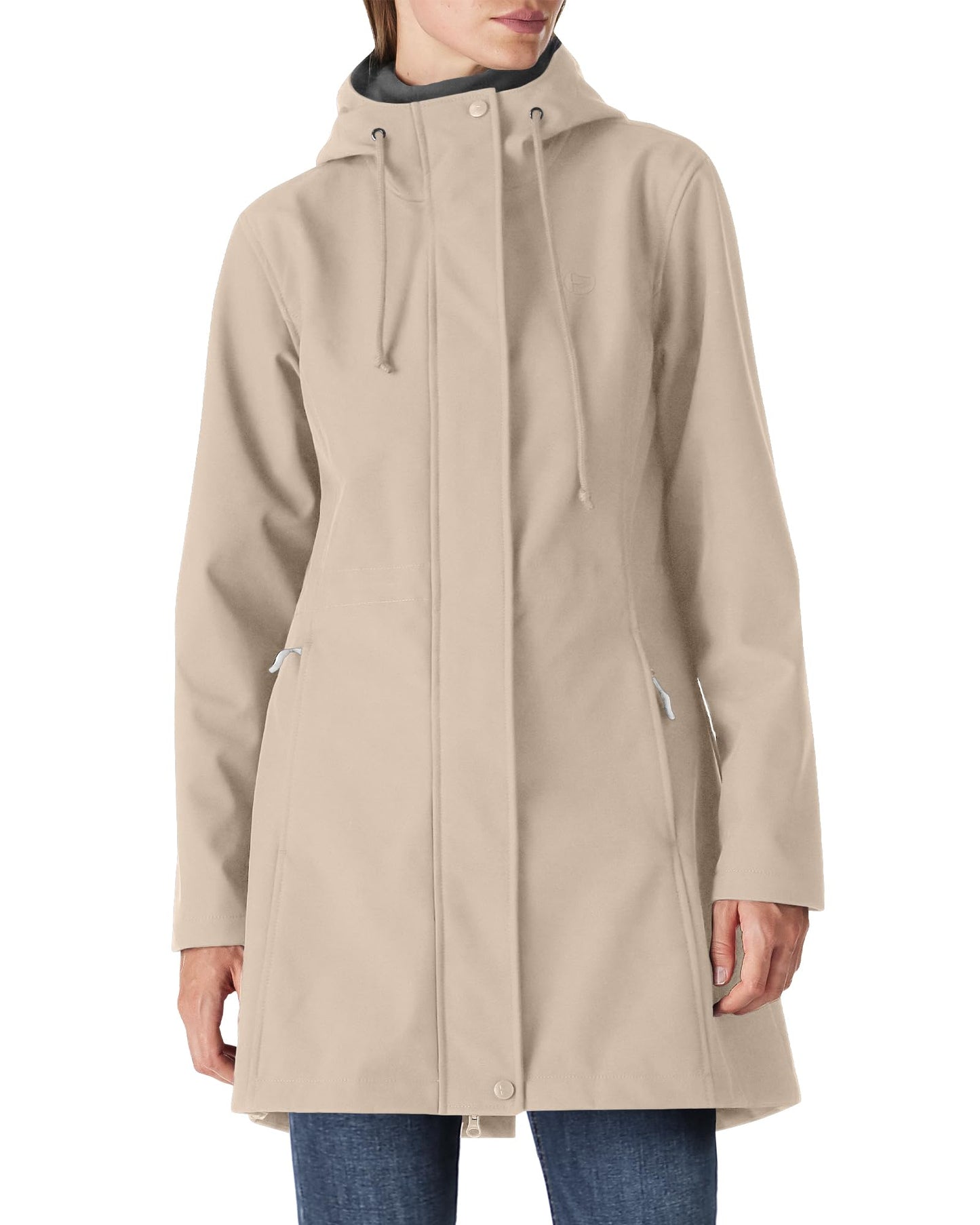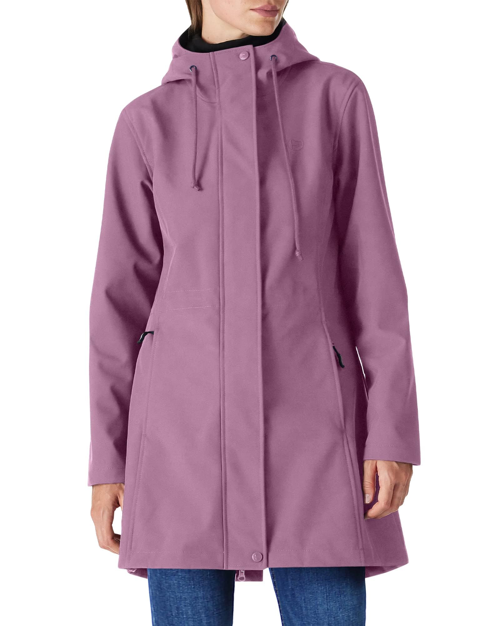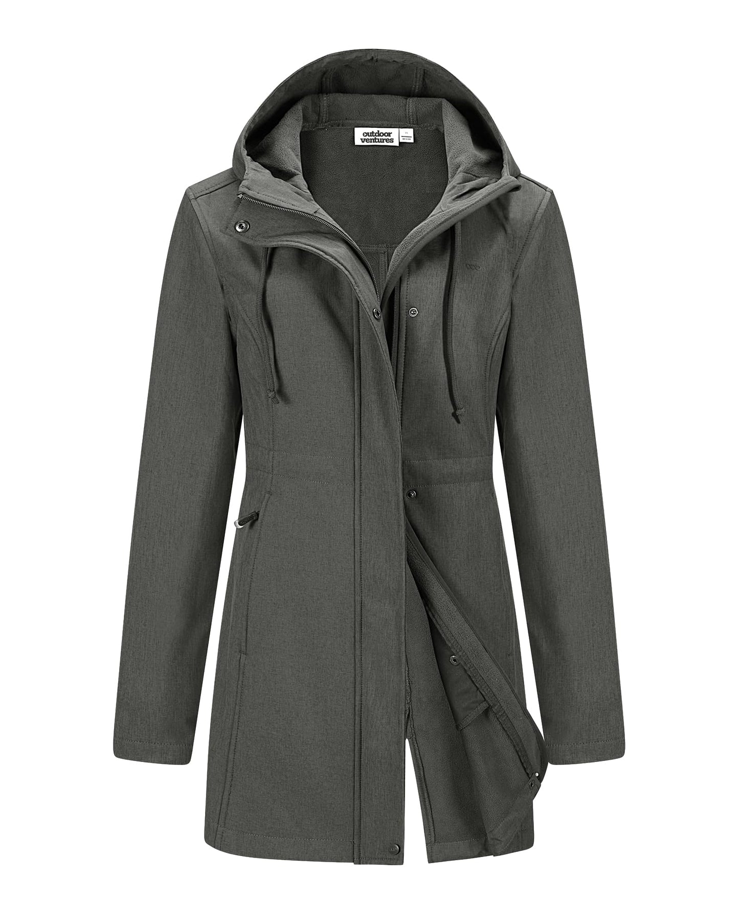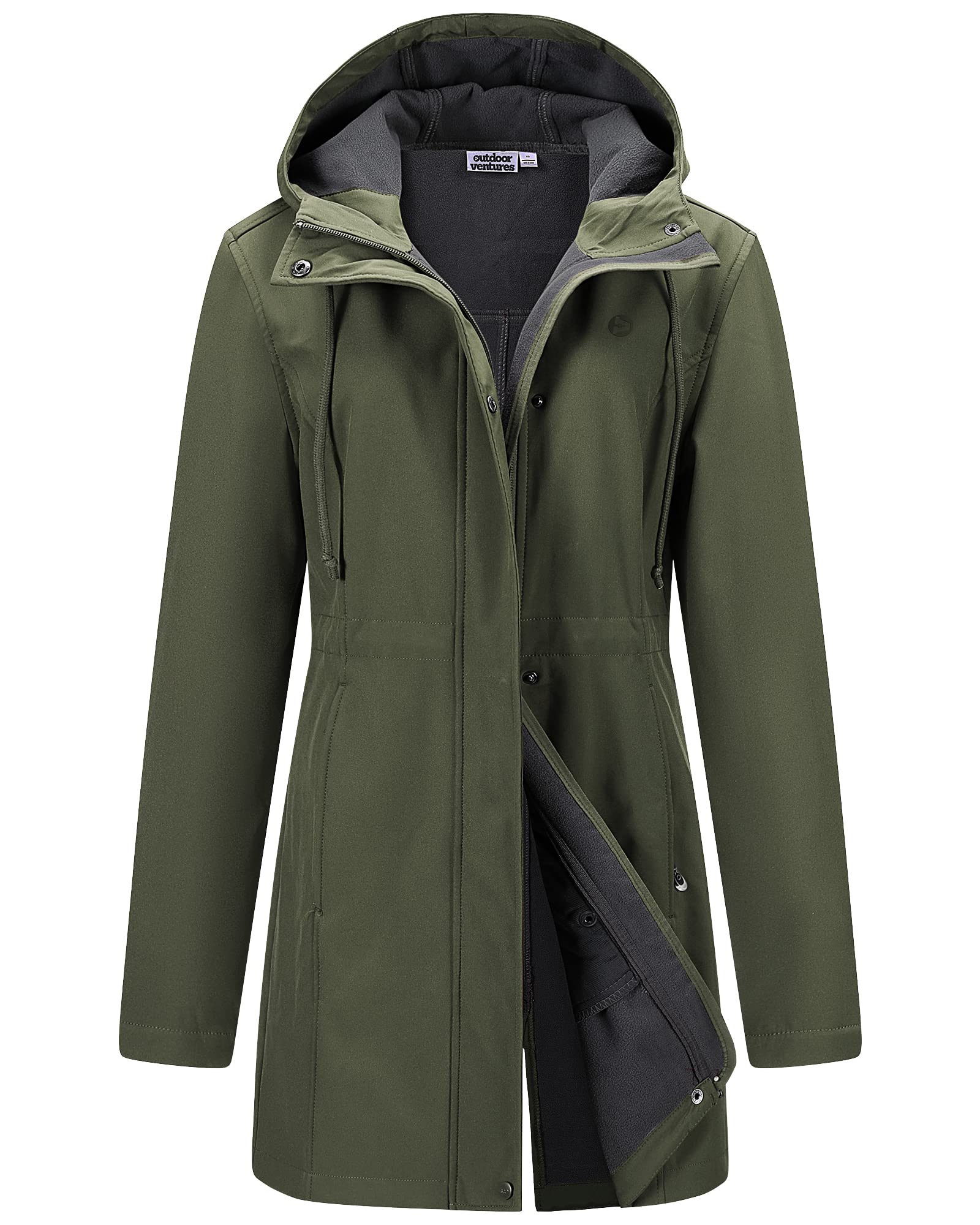 Outdoor Ventures Women's Lightweight Waterproof Fleece Lined Hooded Softshell Rain Jacket, Warm Windbreaker Long Coat