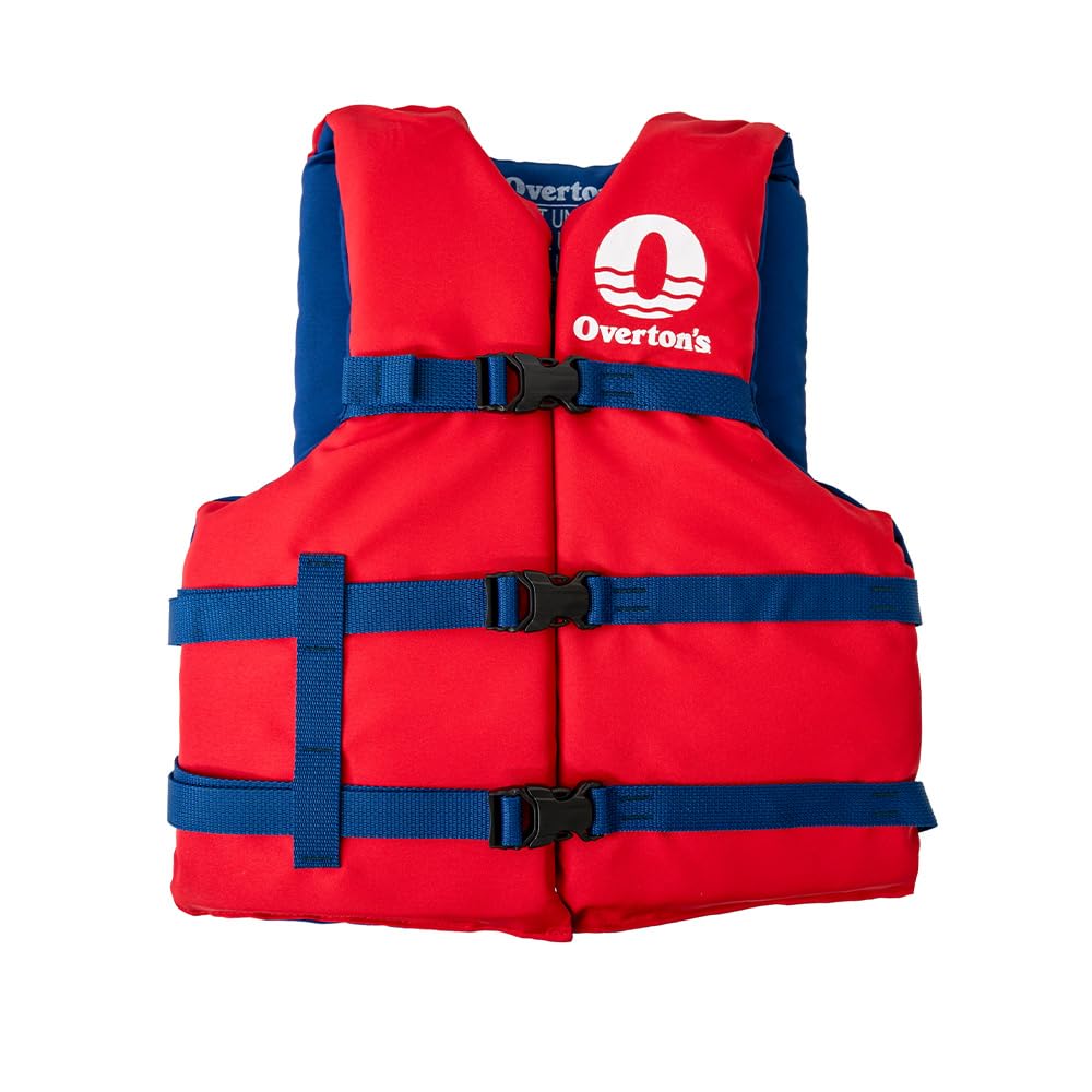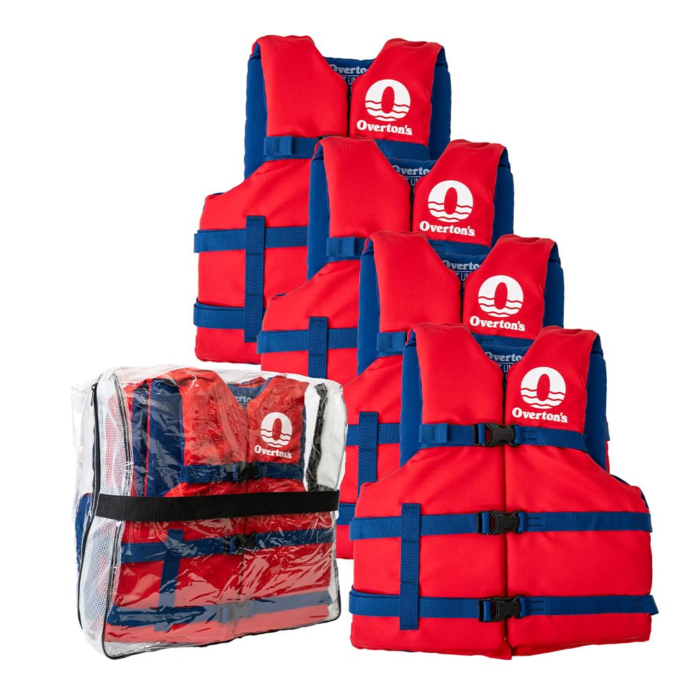 Overton's Universal Adult Life Jacket - Pack of 4, Nylon Shell with Closed-Cell Foam, Open Sides and Sturdy Belts, USCG Approved Type III, Fits Chest Sizes 30" to 52", Includes Zippered Storage Bag
