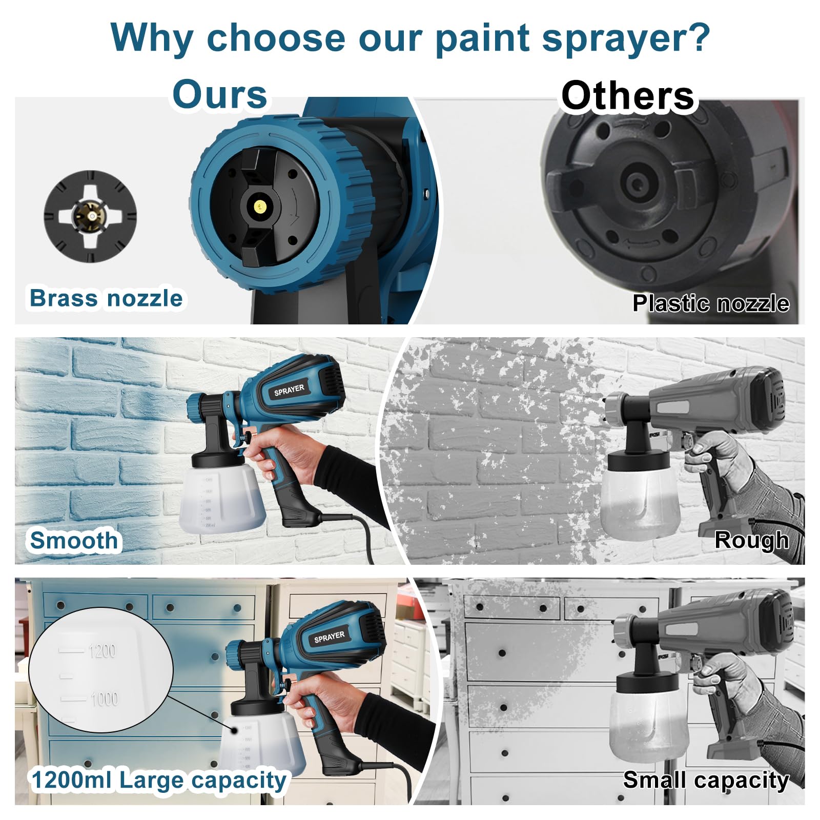 - 【Easy to Use & Clean】The paint sprayer can be easily assembled with no tools, even if you are a beginner, you can easily get started after reading the manual. It is very important to clean the paint sprayer thoroughly after use, it comes with a cleaning brush and a needle to clean paint left in the nozzle part