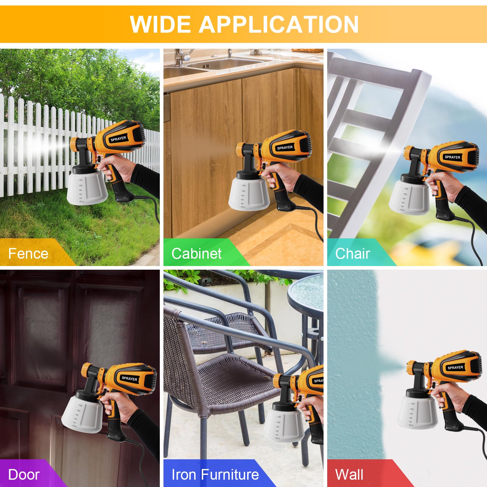Paint Sprayer, 700W HVLP Spray Gun with Cleaning & Blowing Joints, 4 Nozzles and 3 Patterns, Easy to Clean, for Furniture, Cabinets, Fence, Walls, Door, Garden Chairs etc. VF803